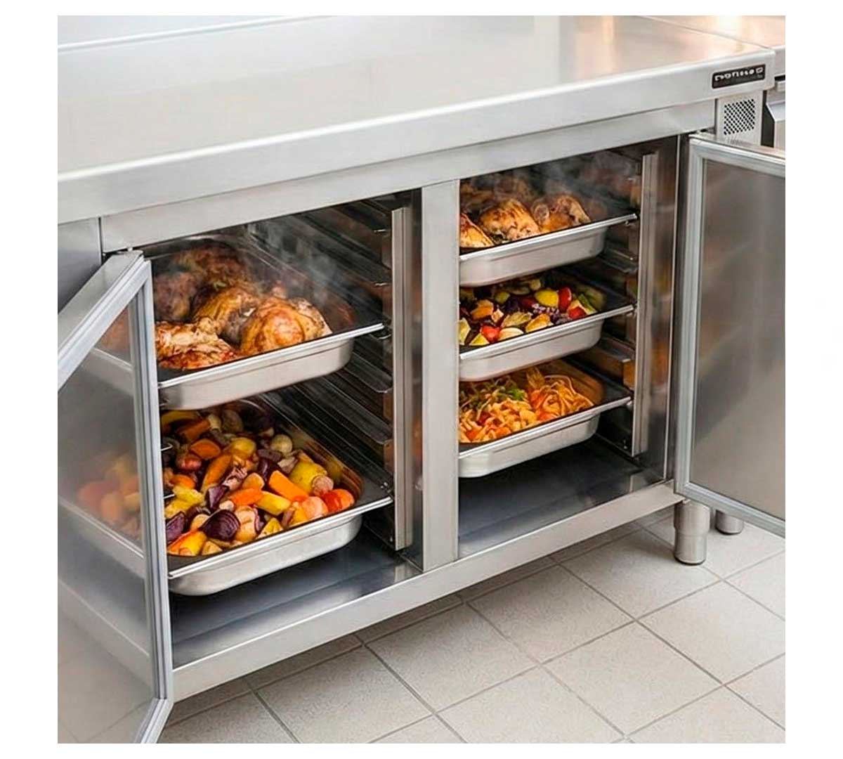 | Distform Mesa Caliente Mural con Guías 2 Puertas - Capacidad 14 GN 1/1 | ||