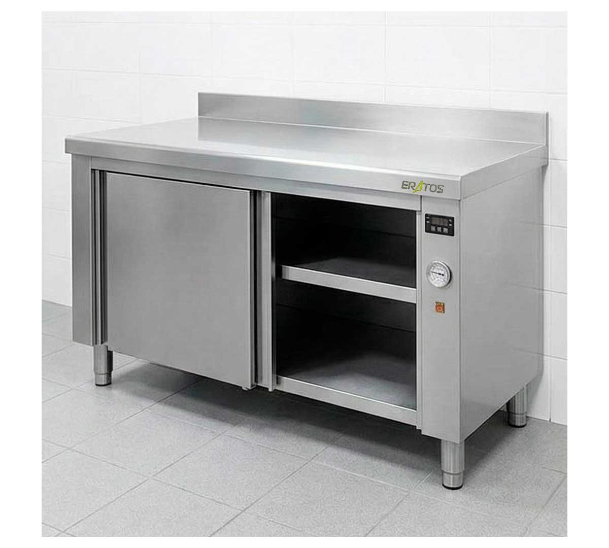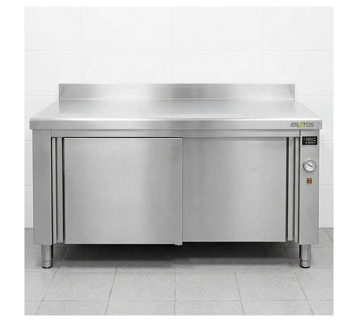 La Mesa Caliente Mural MCA70M de Eratos está fabricada en acero inoxidable AISI-304 18/8 con acabado satinado. Con peto trasero de 10 cm. Tiene calefacción interior por resistencias ventiladas fácilmente extraibles.