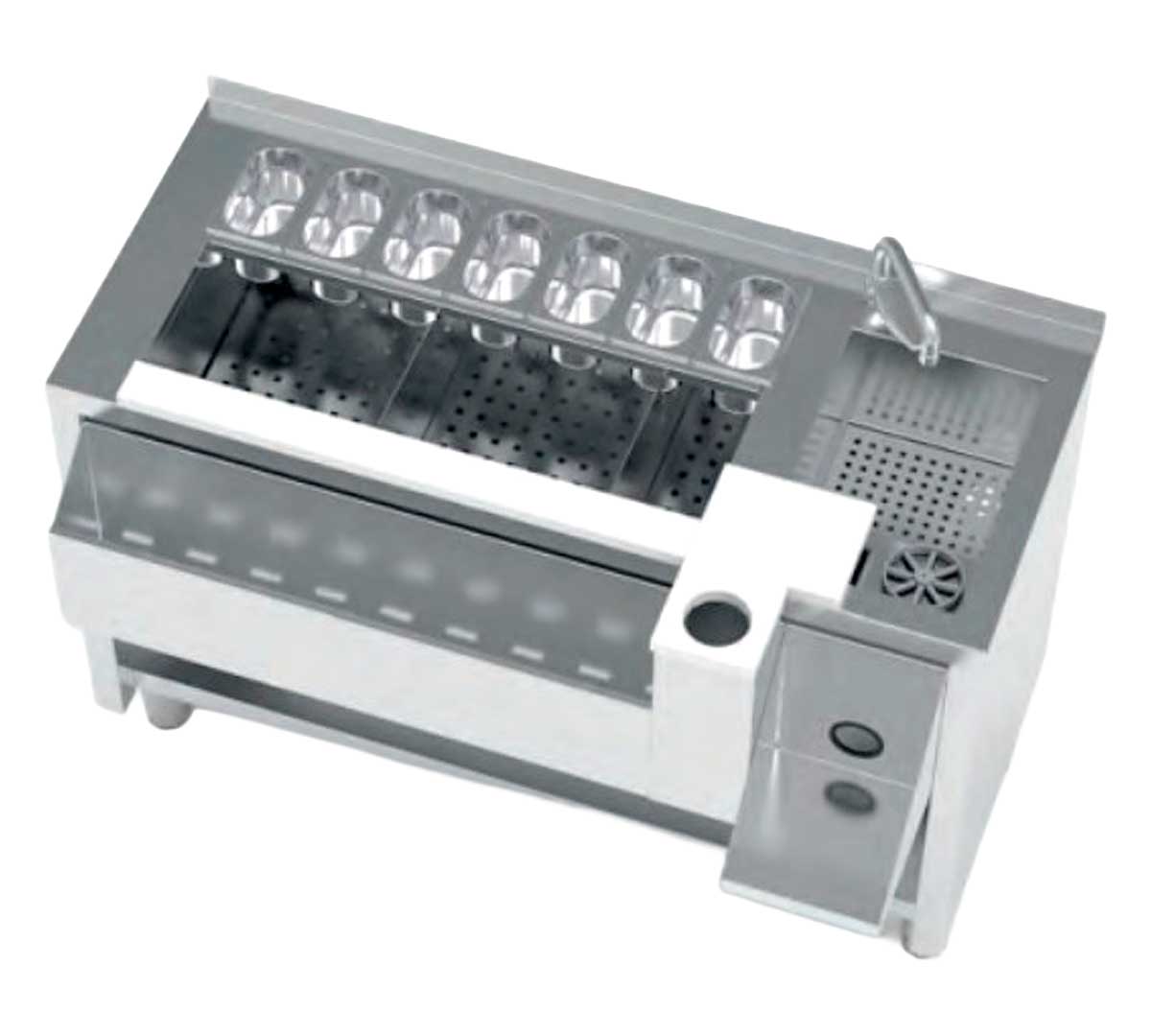 Mesa Preparación de Cócteles MCN de Eratos, de estructura robusta fabricada en acero AISI 304 18/10 satinado y peto de 40 mm.