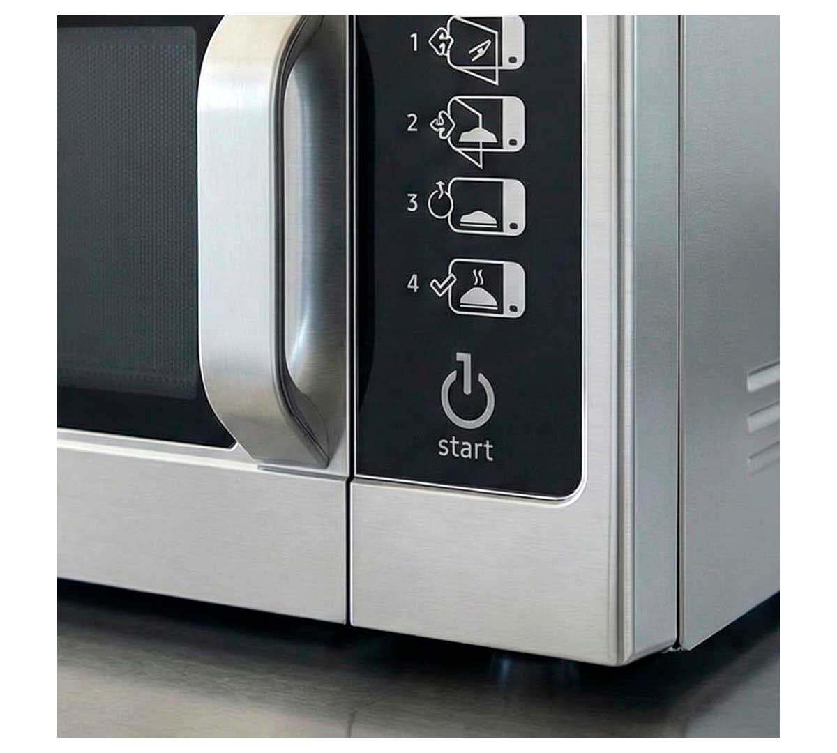 Microondas de la línea Snackmate sin plato giratorio. De funcionamiento básico con un botón único de inicio.