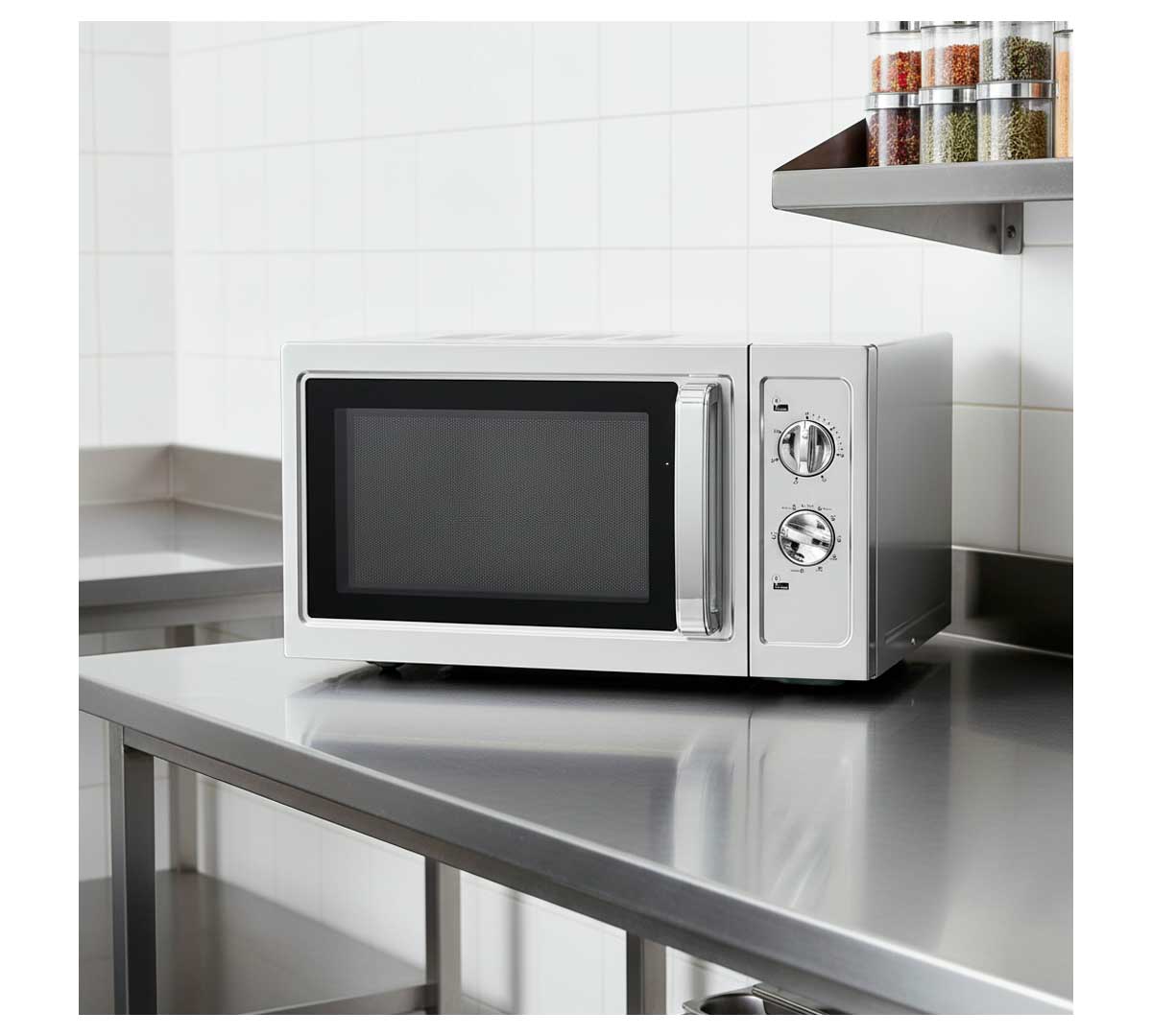 El Microondas Inox Grill de Zinco incluye plato giratorio y cuenta con aviso acústico al finalizar el tiempo de calentamiento.