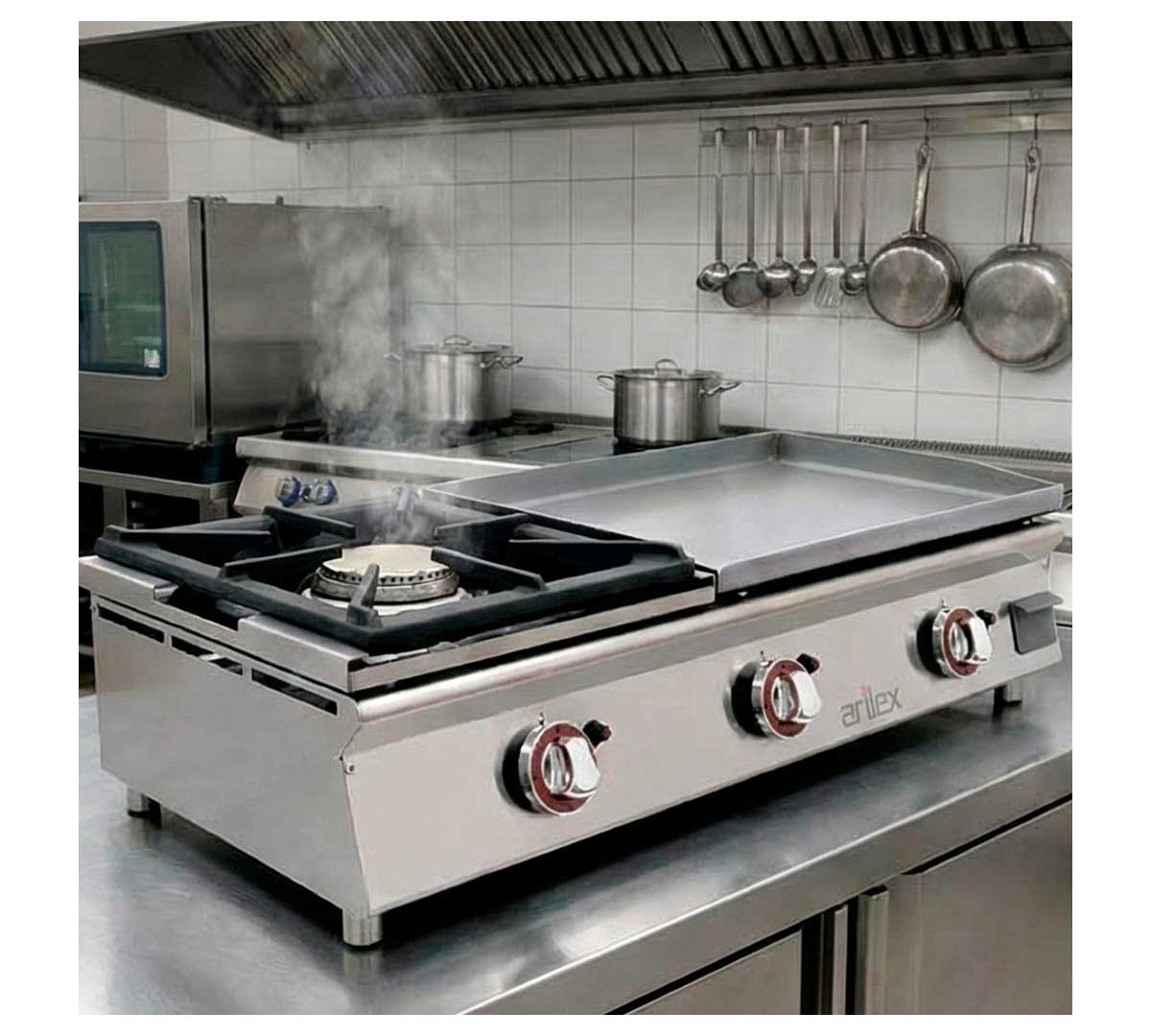 | Arilex Plancha de Acero Laminado con Fogón 80PGLFN - Potencia 2,75 + 5,8 kW | ||