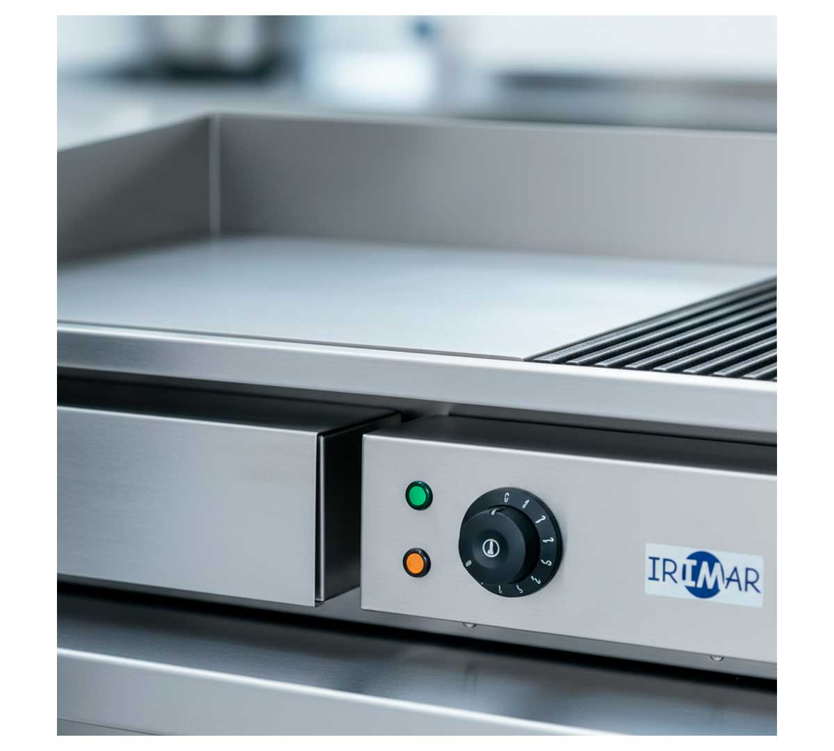 La Plancha Eléctrica Acero Rectificado Placa Mixta de Irimar está diseñada para un uso moderado. Con 2 termostatos para graduar la temperatura hasta los 300 ºC. La placa es mixta , de acero rectificado y tiene 8 mm de grosor.