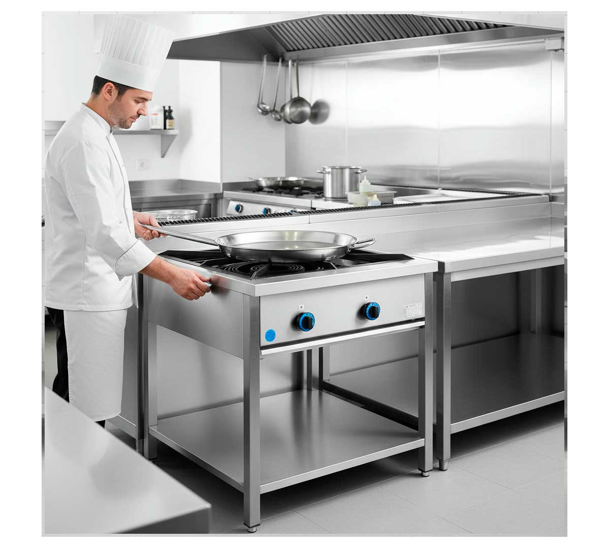 El Quemador Paellero Cerrado MOB/01-1P-T de NTGAS está recomendado para interior en negocios como restaurantes, hoteles, bares, catering, etc.