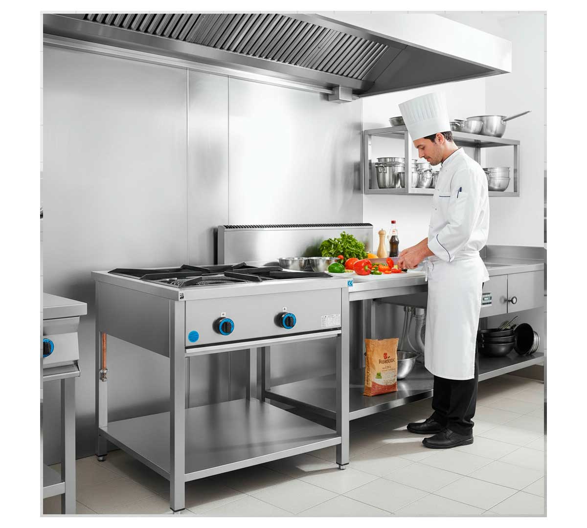 Quemador paellero integrado en mueble de acero cerrado. Modelo a gas y recomendado para interior con válvula de seguridad con termopar. Versatilidad gracias a su posibilidad de uso tanto con gas natural o butano/propano. Quemador paellero Ntgas P31 incluido.