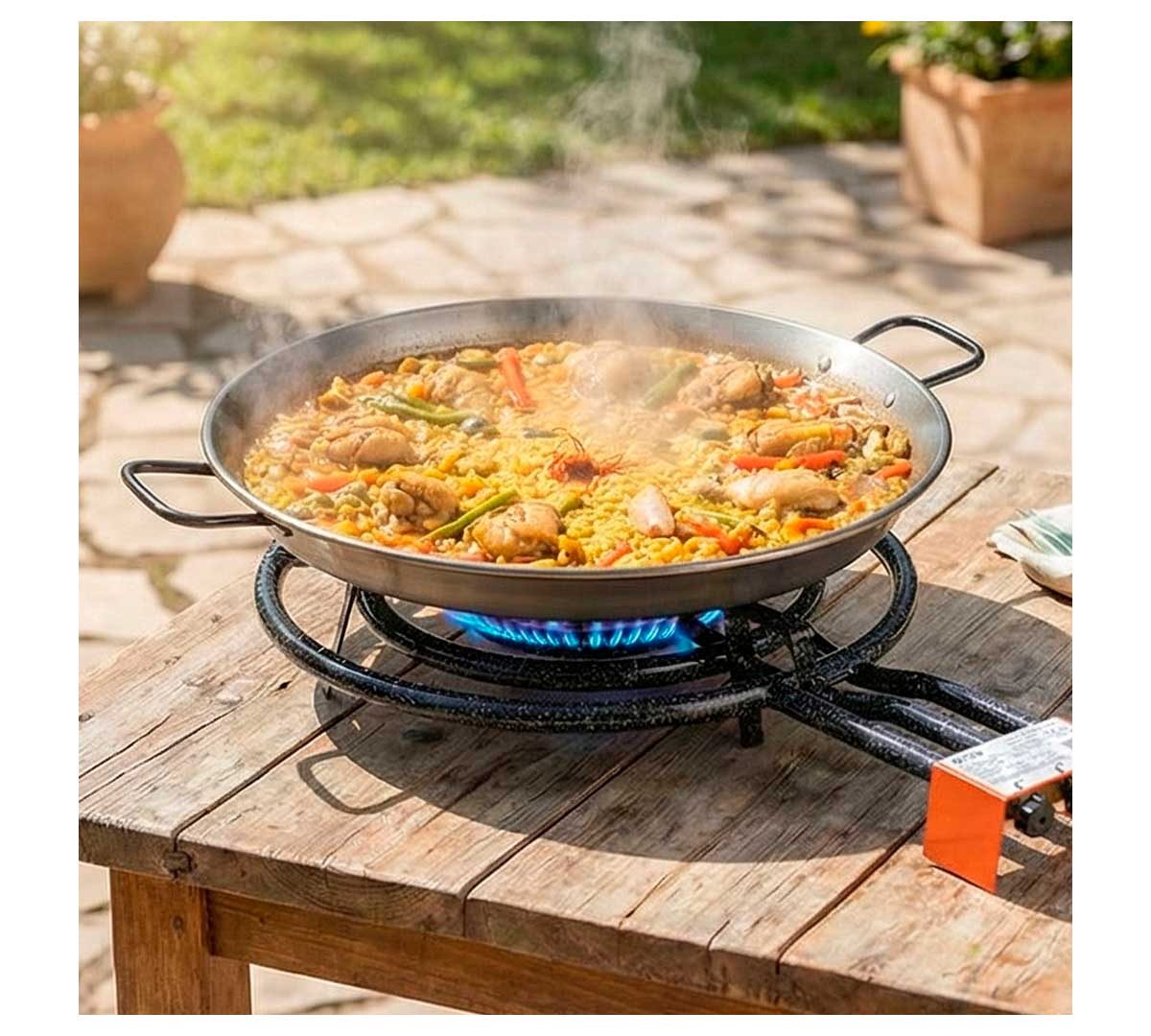 Quemador Paellero de exterior a Gas. Recomendado para paellera de 20 a 90 cm. Está preparado para Gas Butano y Propano. No apto para Gas Natural. Está disponible en dos modelos.