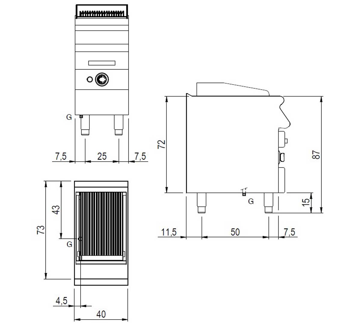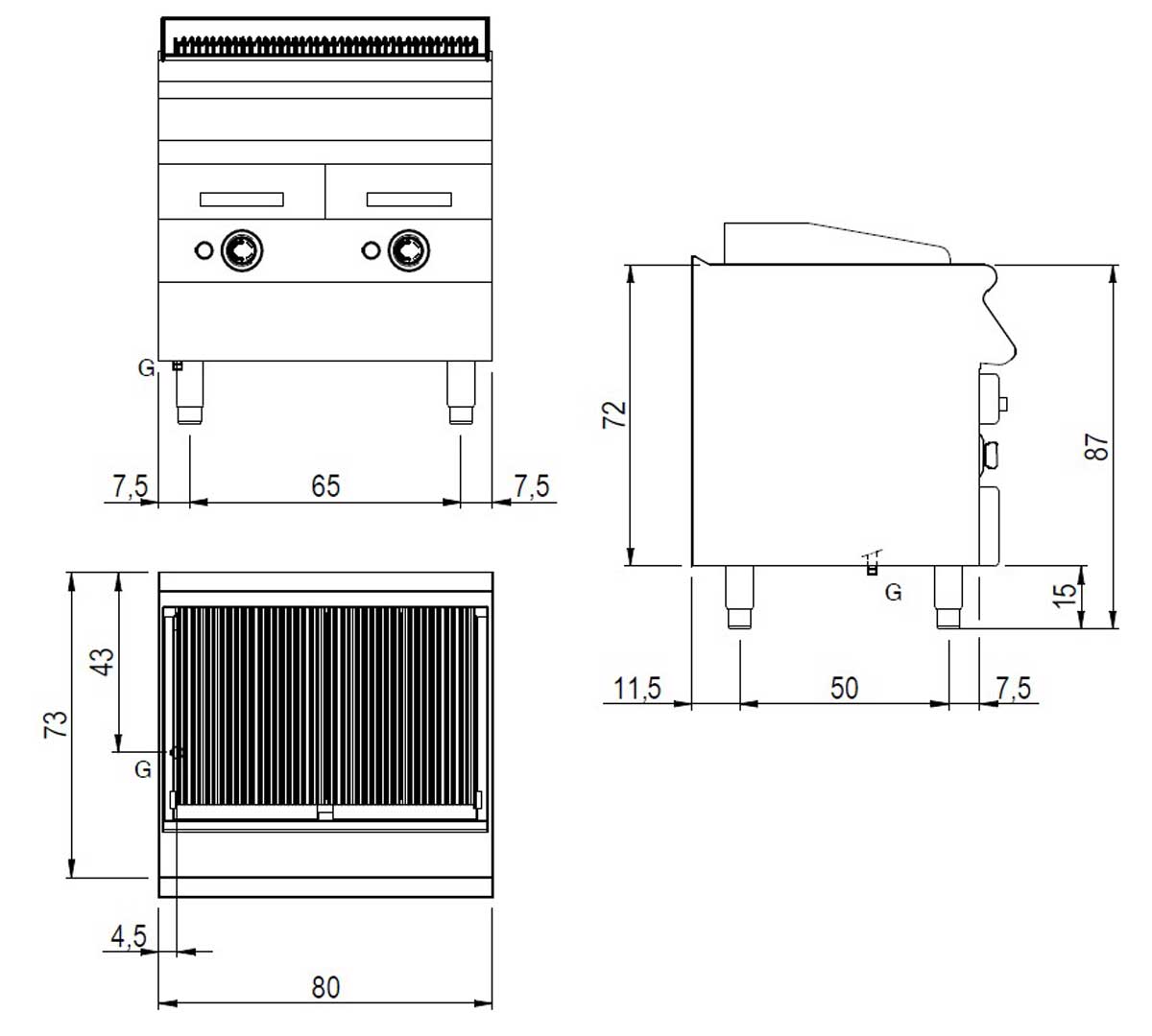 Parrilla 32 x 48 cm. Potencia 7,5 kW
