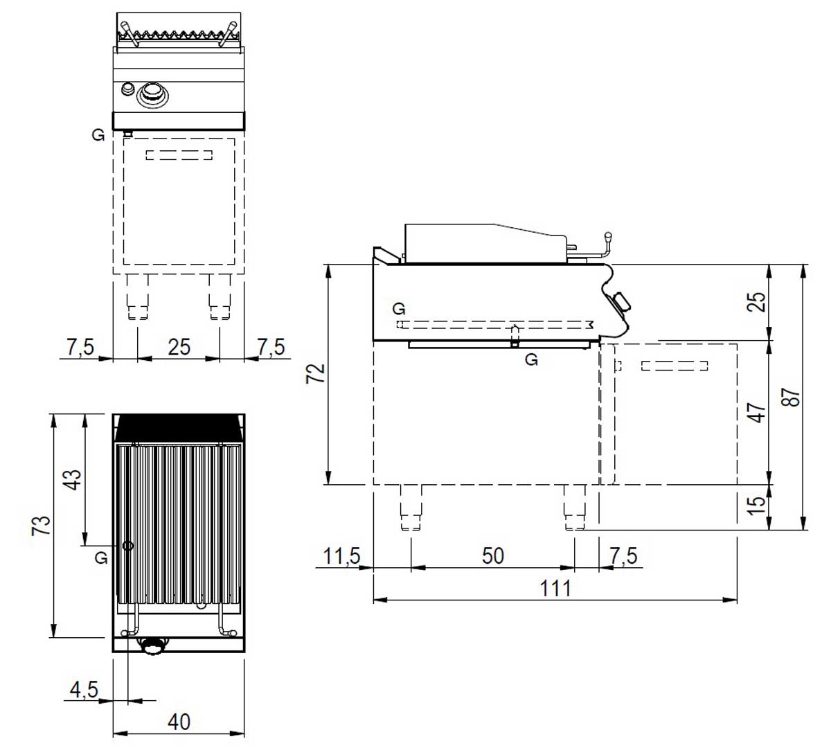 Parrilla 36,5 x 51 cm. Potencia 7,5 kW