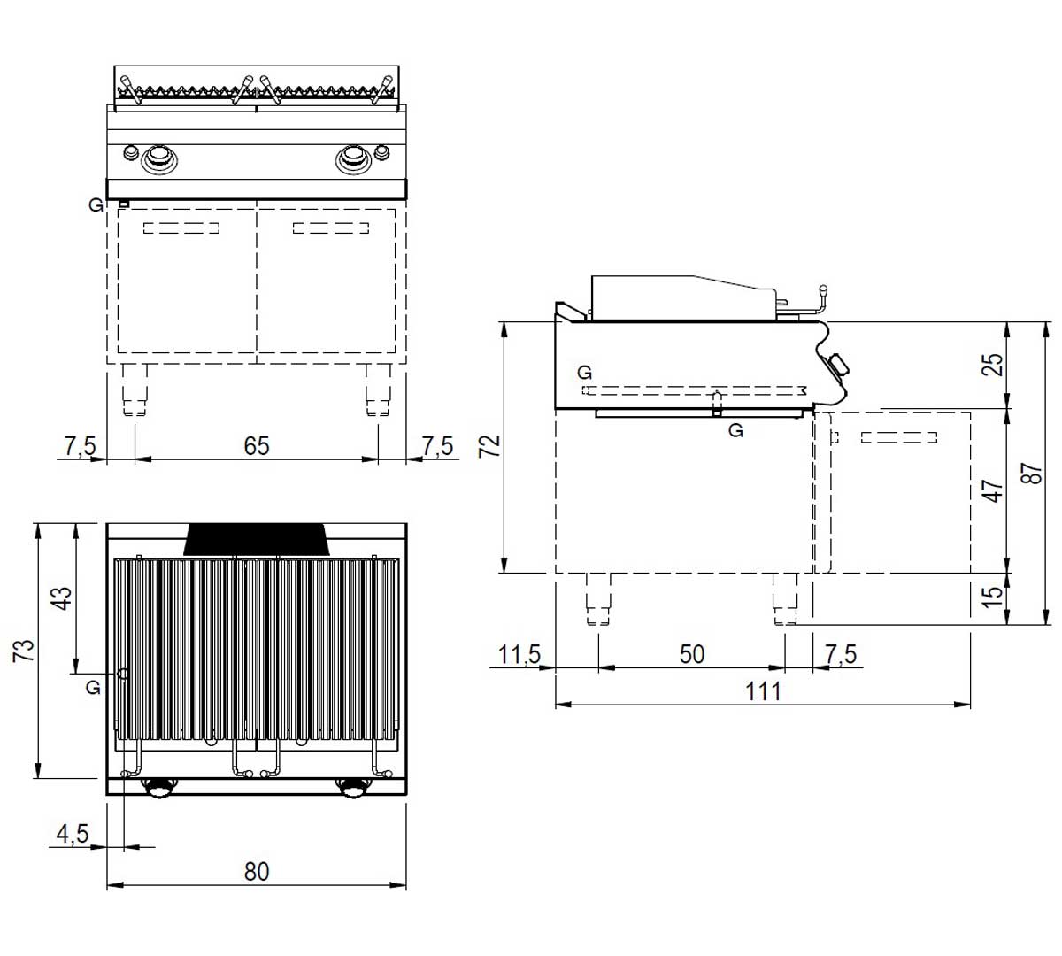 La Barbacoa SV 74 GRL-P y SV 78 GRL-P pertenece a la Serie 700 modular, reconocida por su robustez y fondo unificado de 700 mm que garantiza integración perfecta en cocinas profesionales. Este modelo sobre mueble aporta potencia, espacio de trabajo adicional y el sabor auténtico de la brasa con piedra volcánica, ideal para un servicio de alto nivel.