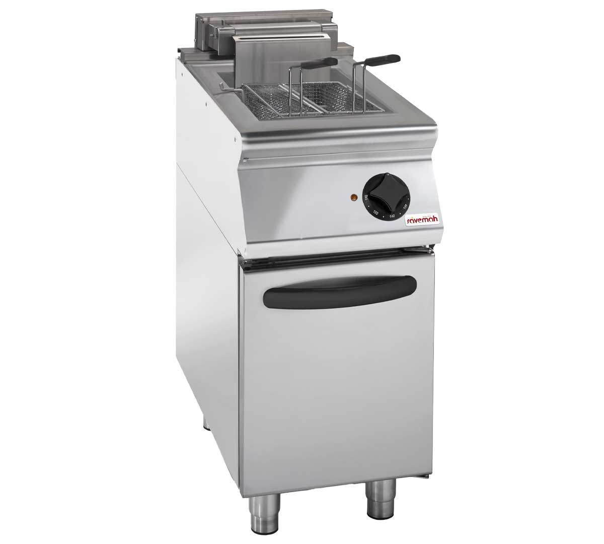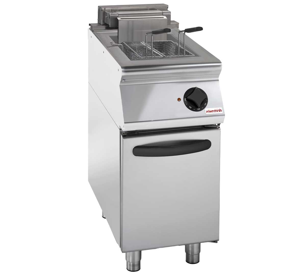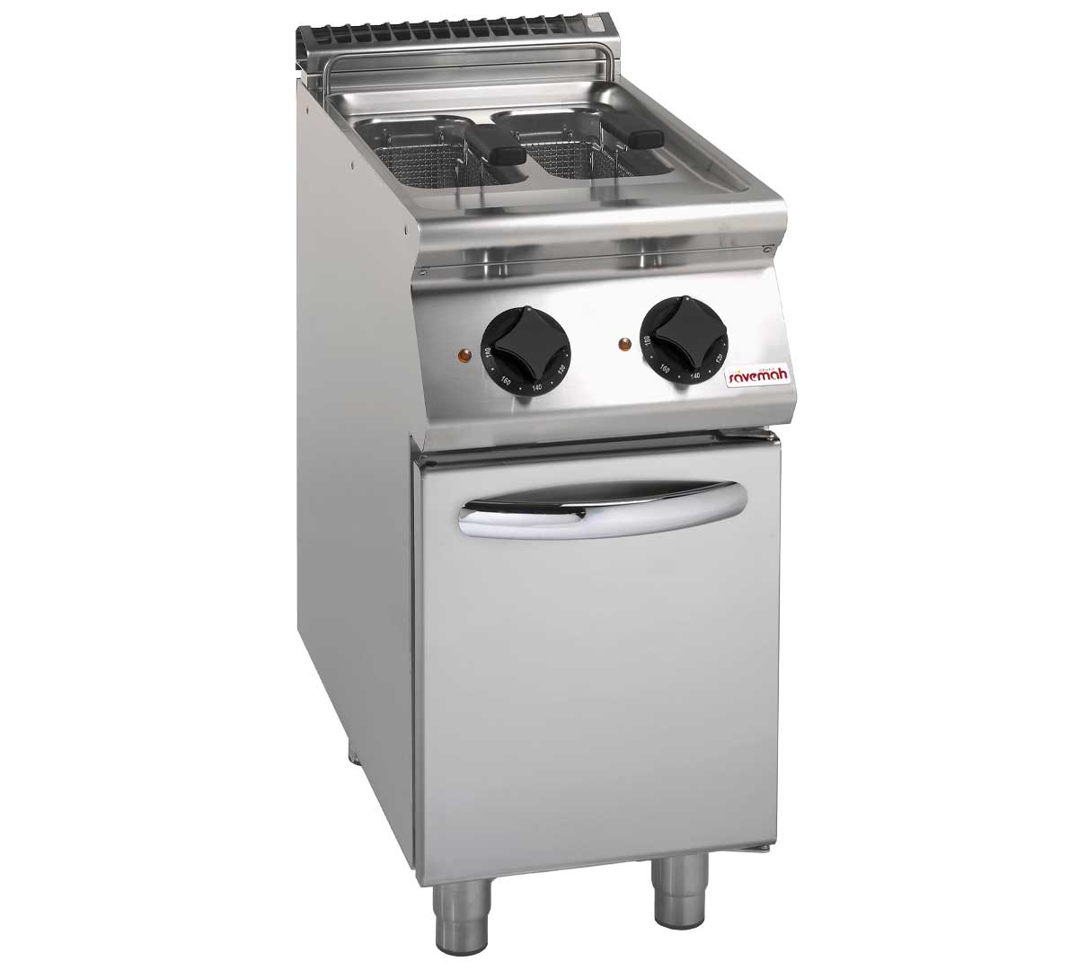 Estas freidoras eléctricas con mueble abierto pertenecen a la Serie 700 modular, reconocida por su fondo unificado de 700 mm y su estructura de acero inoxidable AISI 304 de 2 mm. Destacan por su resistencia, facilidad de limpieza y potencia estable, siendo una solución esencial para el ritmo profesional.