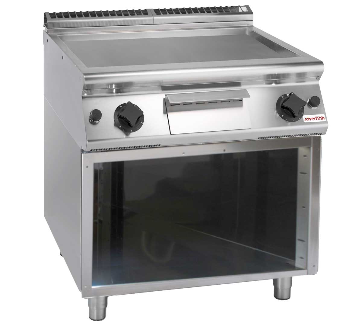 Potencia a gas con plancha lisa en acero y mueble abierto