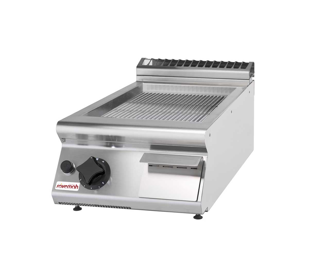 Estos modelos a gas en formato sobremesa, con plancha ranurada de acero rectificado, ofrecen marcado grill perfecto para los alimentos, robustez y alto rendimiento en cocinas profesionales de actividad intensiva.