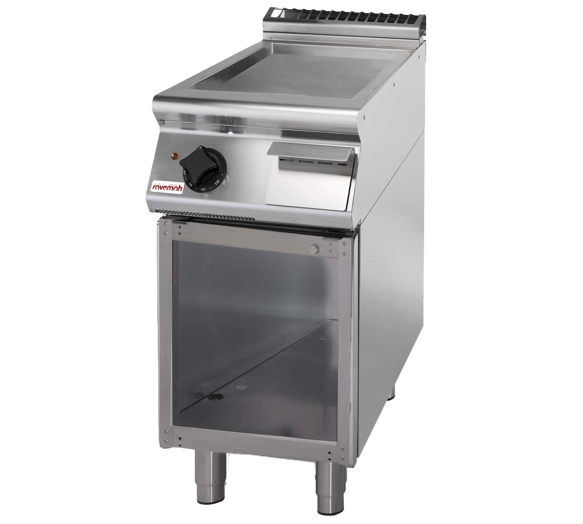 El Fry Top S700 Placa Lisa Acero Mueble Abierto de Savemah es una solución robusta y eficiente para quienes buscan una plancha eléctrica de alto rendimiento, también conocida como fry-top o plancha de asar profesional, diseñada para ofrecer una cocción uniforme y precisa en cocinas de gran exigencia.