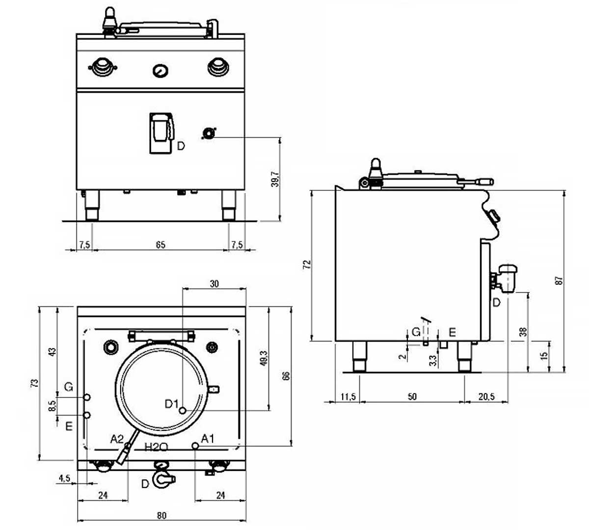 La marmita SV 78 PEI50 pertenece a la Serie 700 modular, reconocida por su fondo unificado de 700 mm y estructura robusta en acero inoxidable. Este modelo de calentamiento indirecto con camisa de agua permite una cocción uniforme, evitando sobrecalentamientos y garantizando un control térmico preciso.