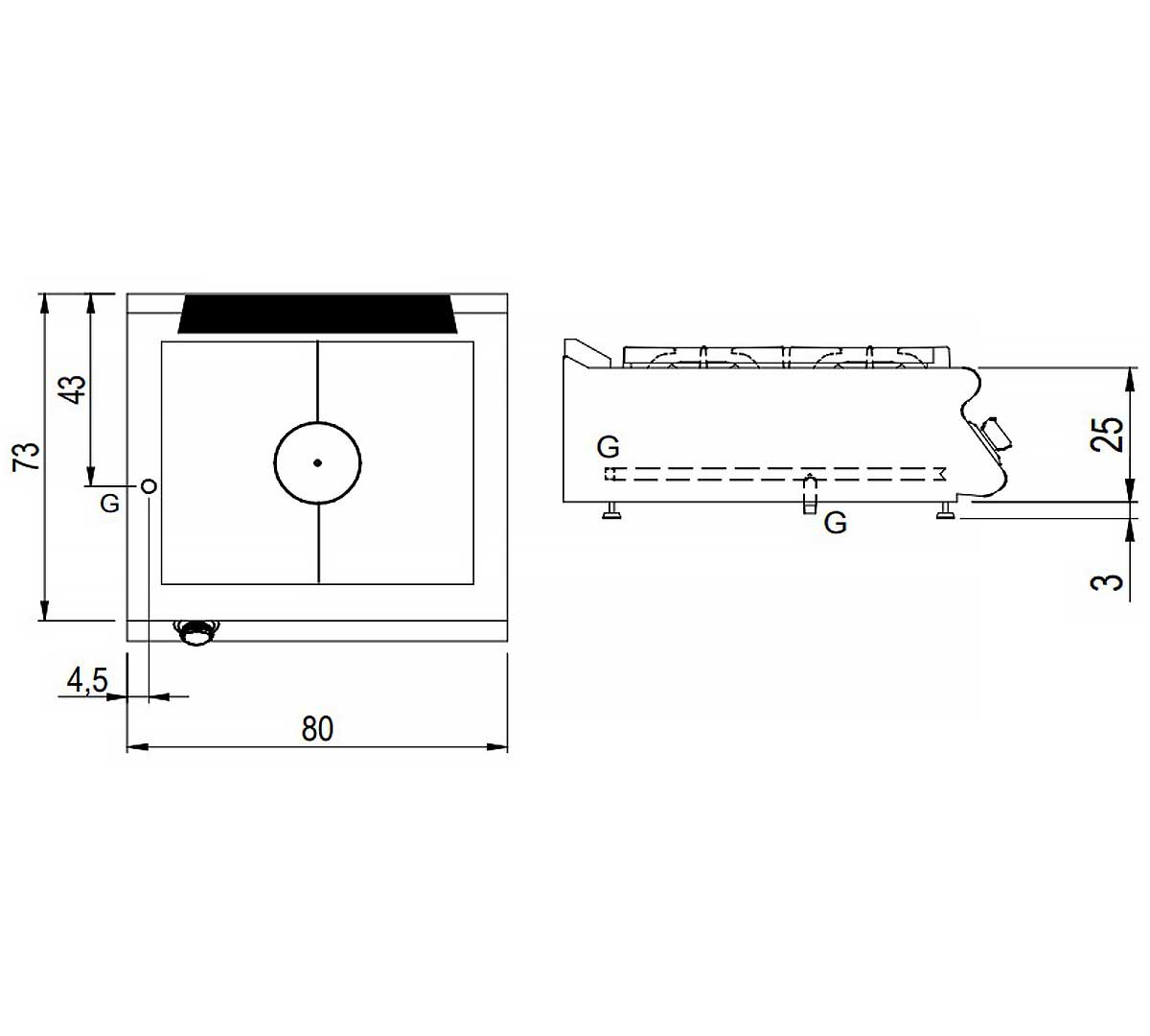 Esta cocina, también conocida como cocina de placa sólida o cocina de placa radiante a gas, destaca por su construcción en acero inoxidable AISI 304 de 2 mm de espesor, lo que garantiza una durabilidad excepcional y una fácil limpieza en entornos exigentes.