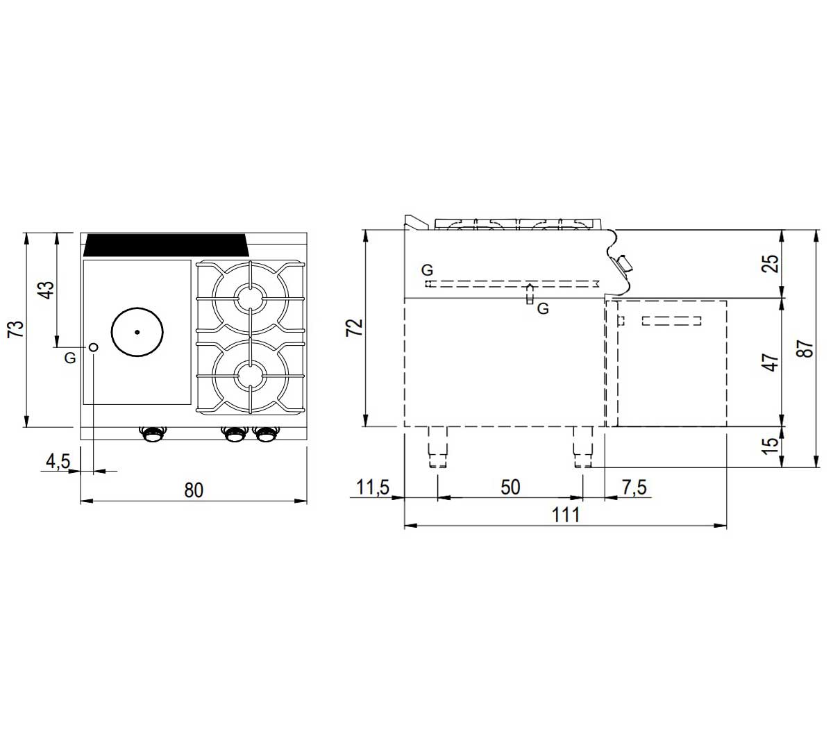 La Cocina S700 Placa Radiante 80 cm 2 Fuegos + Horno SV 78 TPPCFGB de Savemah es una solución robusta y versátil para quienes buscan una cocina industrial de alto rendimiento, capaz de responder a las exigencias de una cocina profesional.