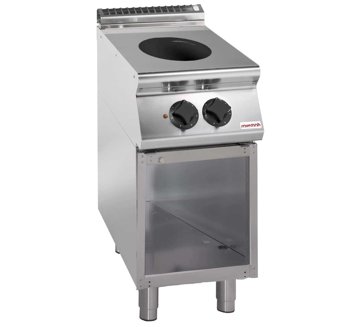 La cocina SV 74 INDW pertenece a la Serie 700 modular, reconocida por su fondo unificado de 700 mm y construcción sólida en acero inoxidable. Este modelo WOK combina una zona de cocción de 5 kW con tecnología de inducción electromagnética que calienta directamente el recipiente, ofreciendo eficiencia, seguridad y control total.