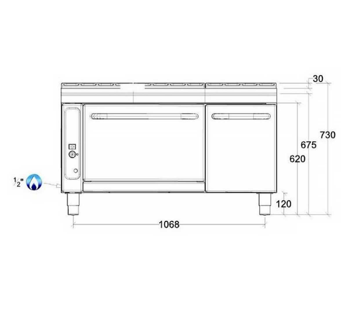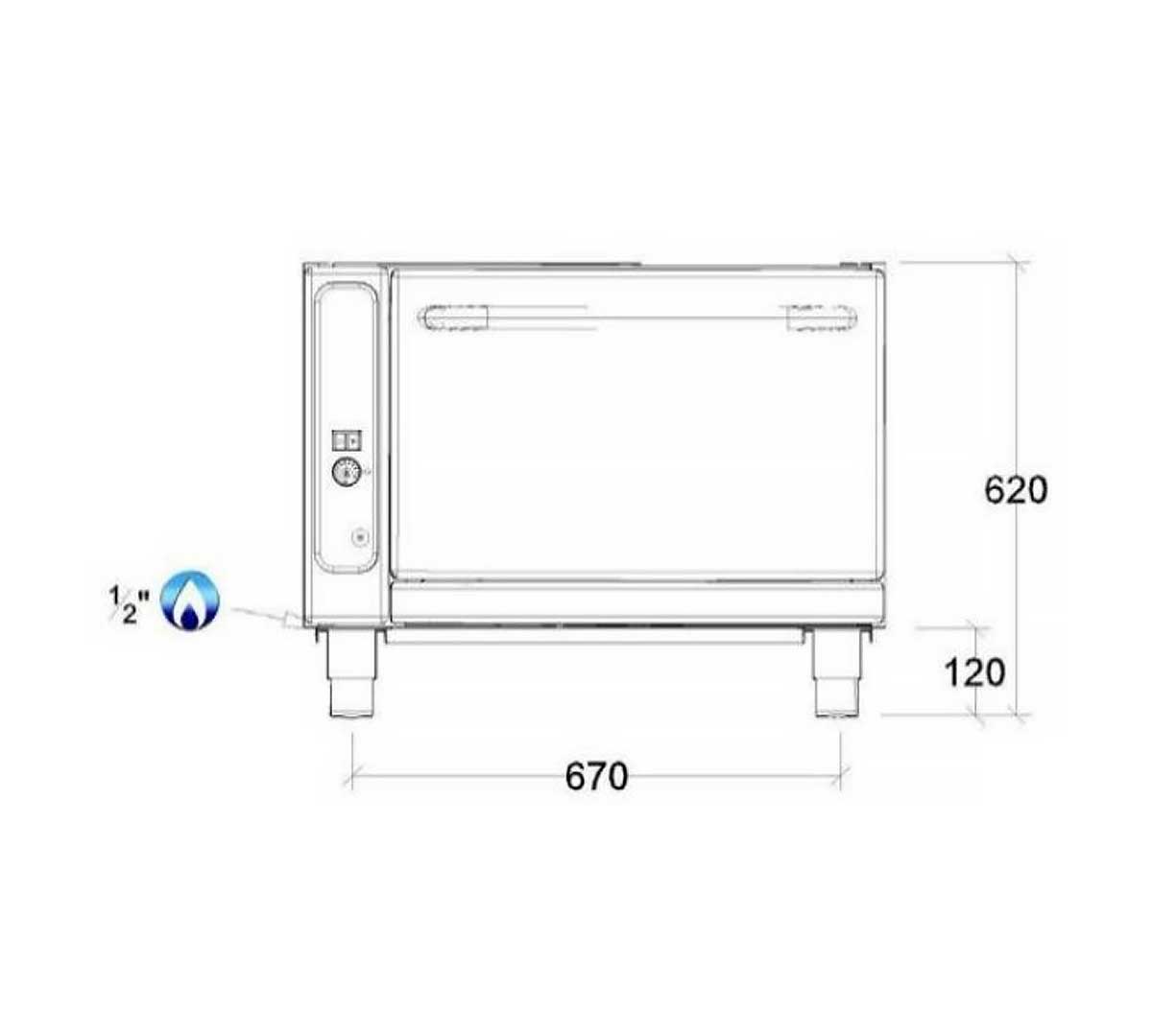 Este horno a gas, también conocido como sistema de horneado, destaca por su construcción en acero inoxidable tanto en el cerco como en la contra-puerta, lo que garantiza una excelente durabilidad y facilidad de limpieza.