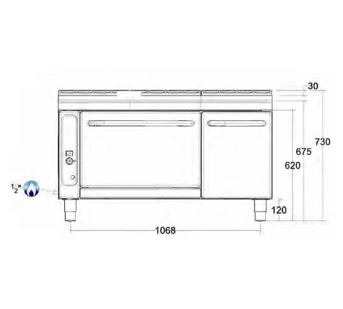 Horno a gas de alta robustez, fabricado en acero inoxidable, con cámara espaciosa y guías para bandejas. Ofrece control preciso de temperatura, fácil limpieza y opciones de personalización en color y acabados.