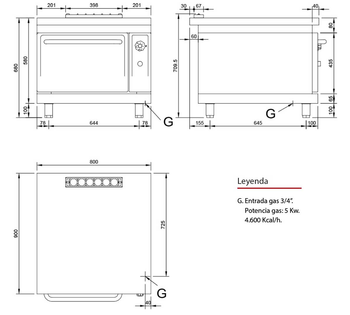 | Dimensiones interiores horno | 530 x 750 x 330 | mm |