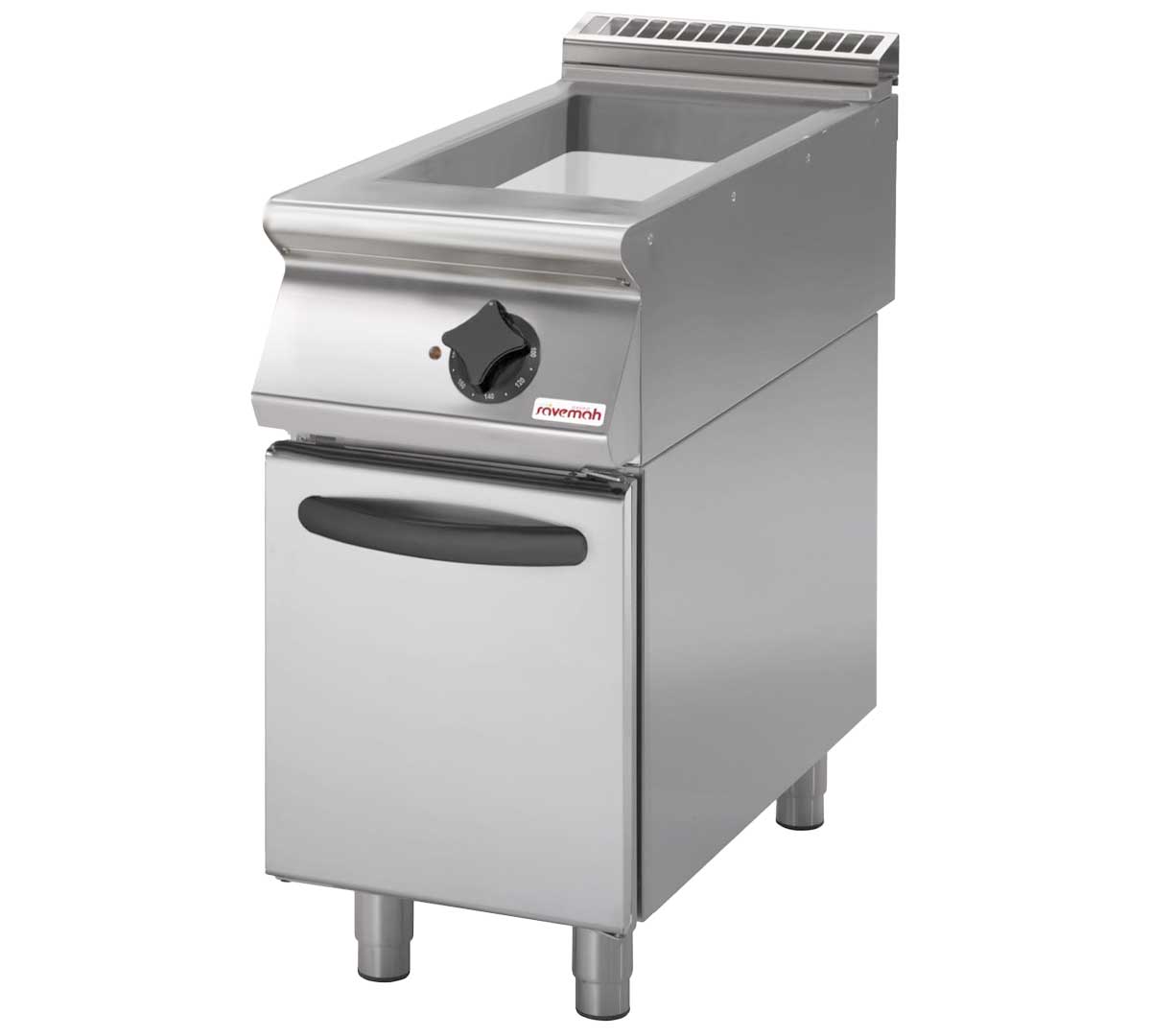 Incorpora resistencias blindadas de alto rendimiento bajo el fondo de la cuba, termostato regulable y mando frontal ergonómico. Permite una cocción uniforme, rápida y segura, adaptándose a distintas necesidades de cocina profesional.