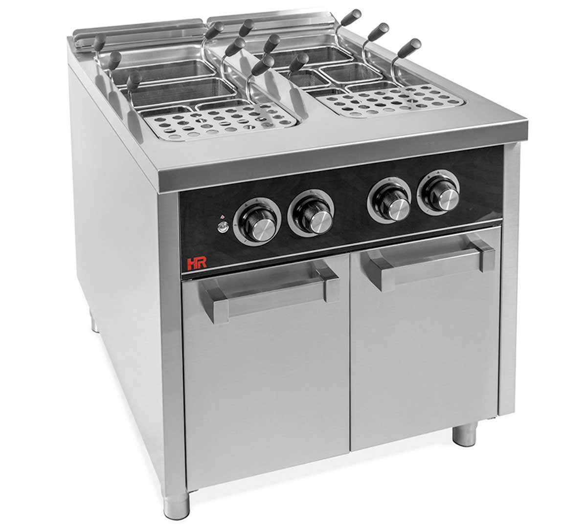 Este cocedor de pasta es perfecto para cocinas que requieren una producción continua y eficiente de pasta, como restaurantes italianos, comedores colectivos, caterings y cualquier establecimiento que precise preparar grandes cantidades de pasta, arroz, verduras o productos similares de forma rápida y segura. Su diseño permite trabajar con diferentes tipos de cestas y configuraciones, adaptándose a las necesidades de cada servicio.