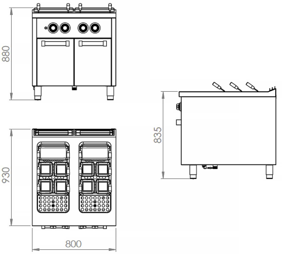 Este cuece pastas industrial, también conocido como cocedor de pasta profesional, está diseñado para ofrecer un rendimiento sobresaliente y una operatividad sencilla, facilitando la preparación rápida y homogénea de cualquier tipo de pasta, verduras o productos similares.