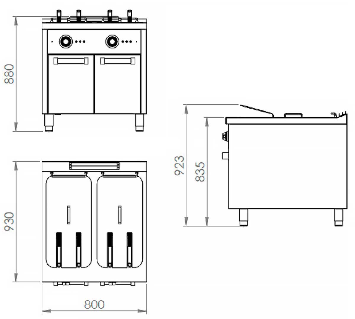 Este equipo de fritura está especialmente indicado para cocinas que requieren una producción intensiva y continua de alimentos fritos, como restaurantes, comedores colectivos, caterings y establecimientos de comida rápida. Su doble cuba permite trabajar con diferentes productos o aceites simultáneamente, optimizando tiempos y resultados.