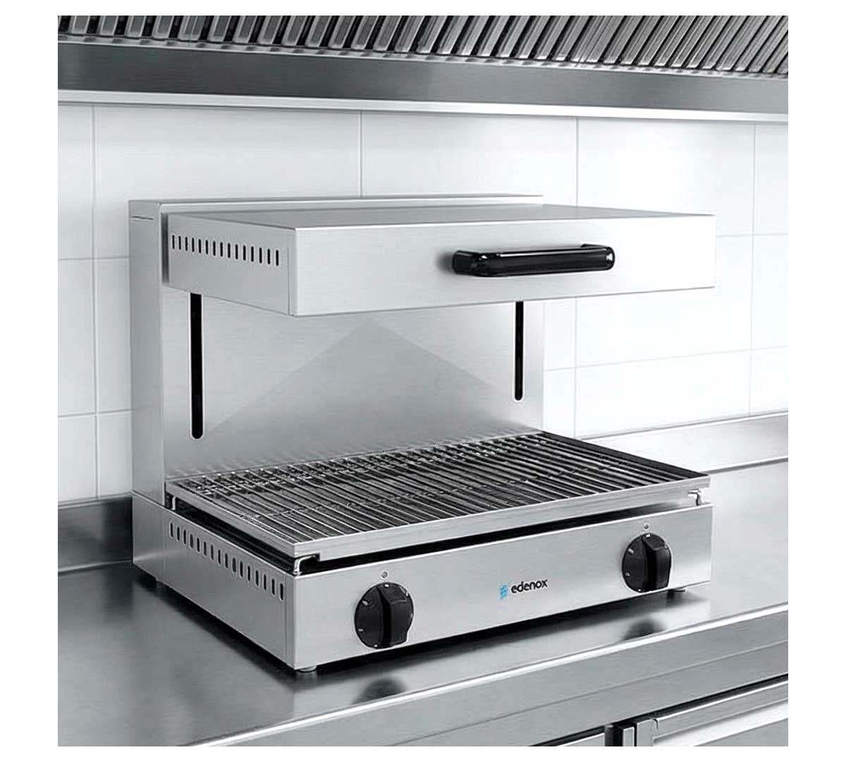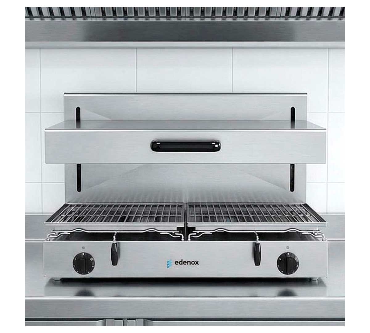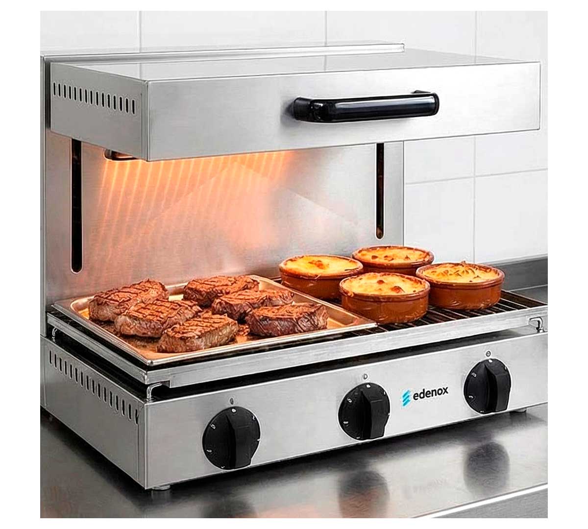 La Salamandra SE-E de Edenox, dispone de techo móvil para gratinar, cocinar, dorar y darle un toque de calor a los alimentos antes de servir.