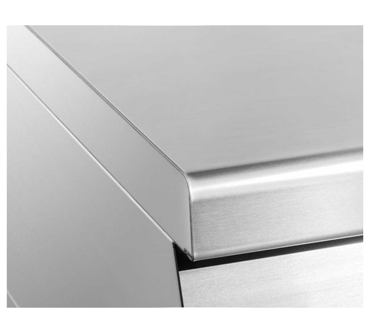 Mueble neutro compacto en acero inoxidable, diseñado para almacenamiento y soporte en cocina profesional. Incorpora opción de cajón Gastronorm 1/1 y destaca por su robustez y fácil limpieza.