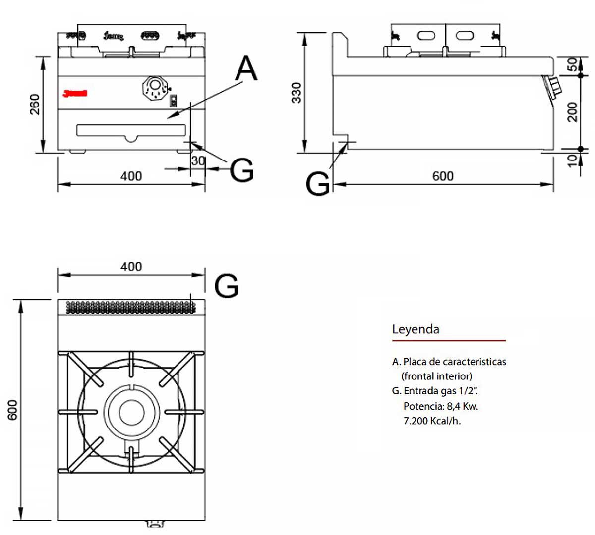 8,4 kW. Dimensiones 40 x 60 x 26 cm