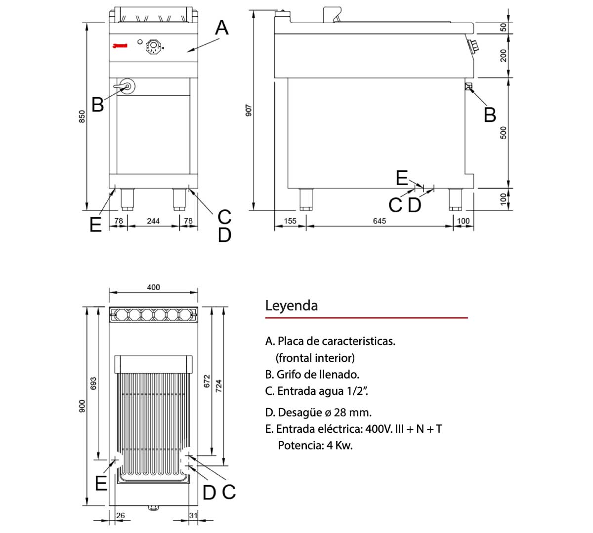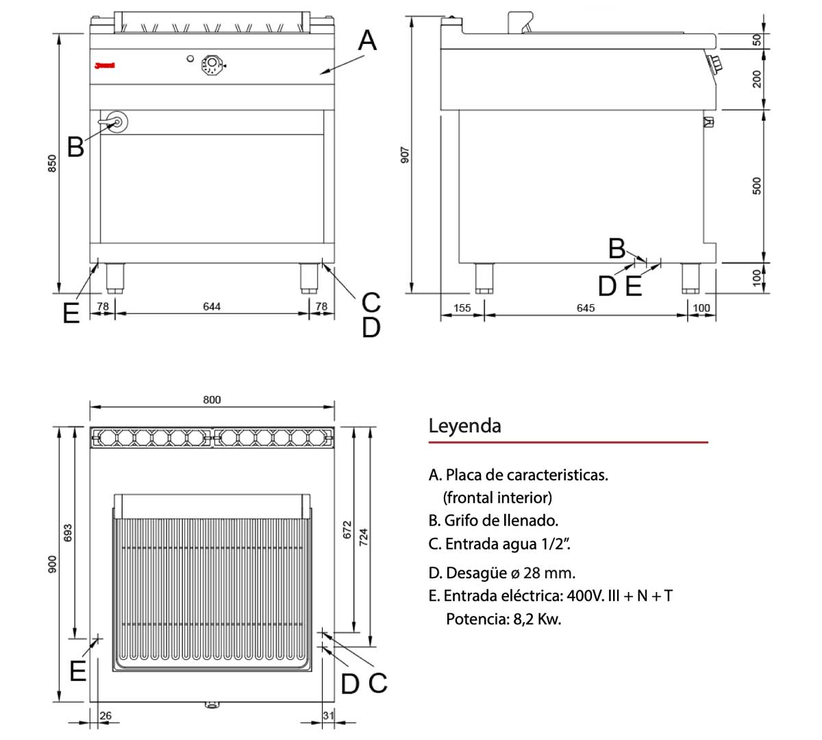 Jemi Serie 900 Parrilla Eléctrica Agua PAE90 - Potencia 4 kW | ||