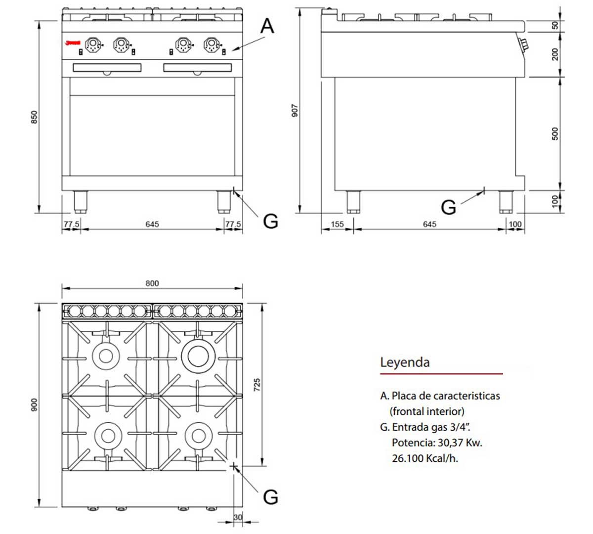 Número de fuegos | 4 | |