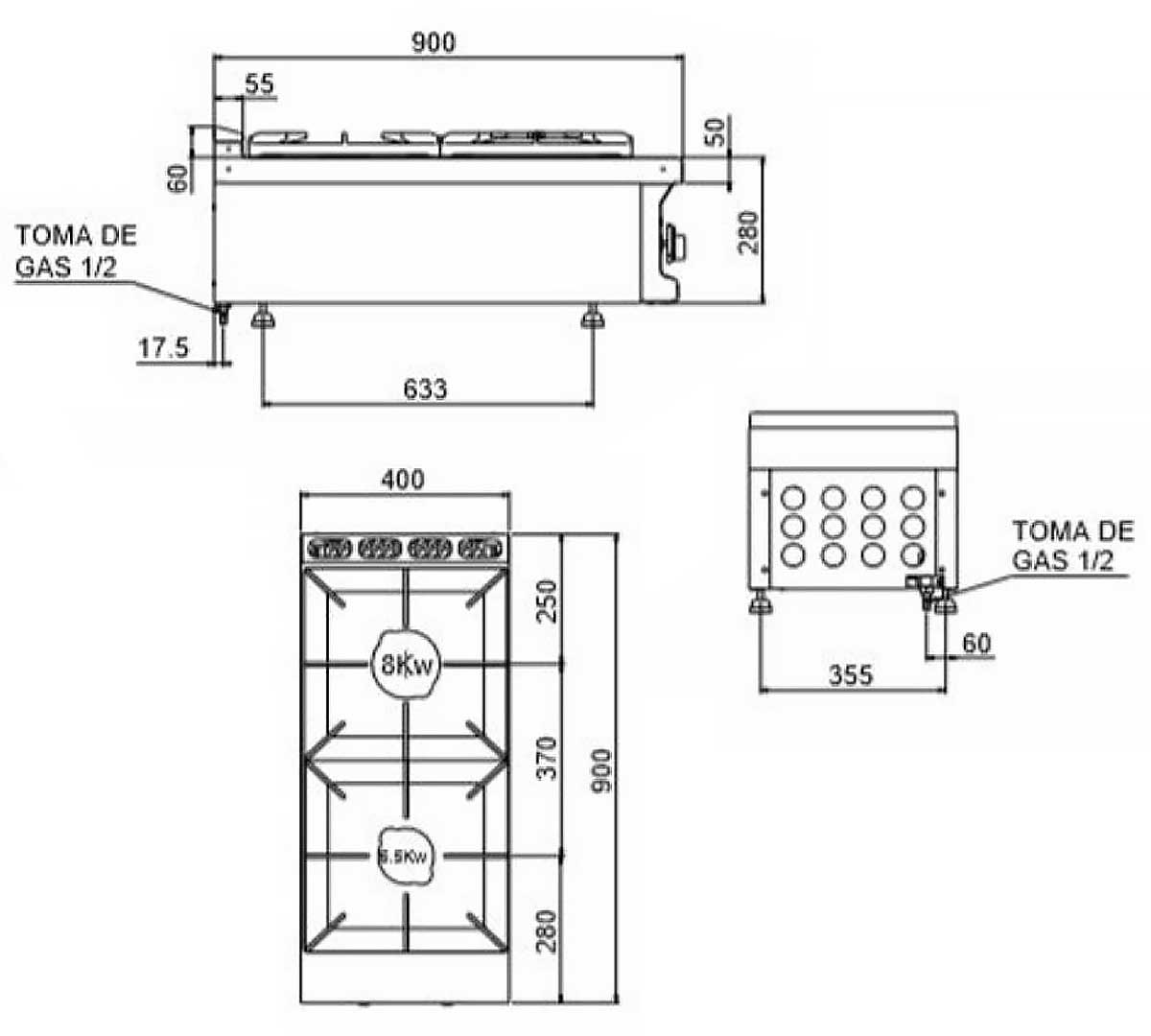 Esta cocina de gas profesional está especialmente indicada para restaurantes, bares, cafeterías y cocinas centrales que requieren un equipo versátil y fiable. Su configuración de dos fuegos permite preparar simultáneamente diferentes platos, optimizando los tiempos de trabajo en cocina. El sistema de quemadores de alta eficiencia garantiza una distribución uniforme del calor, ideal para todo tipo de cocciones desde salteados rápidos hasta guisos de cocción lenta.