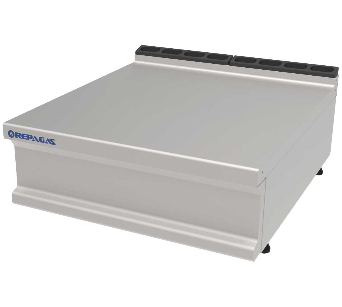 El MN-89/M Pro forma parte de la Serie 900 Professional Line, con fondo de 900 mm, encimera reforzada y diseño modular compatible con el resto de los equipos Repagas. Su estructura de acero inoxidable garantiza resistencia, higiene y continuidad estética en cocinas profesionales.