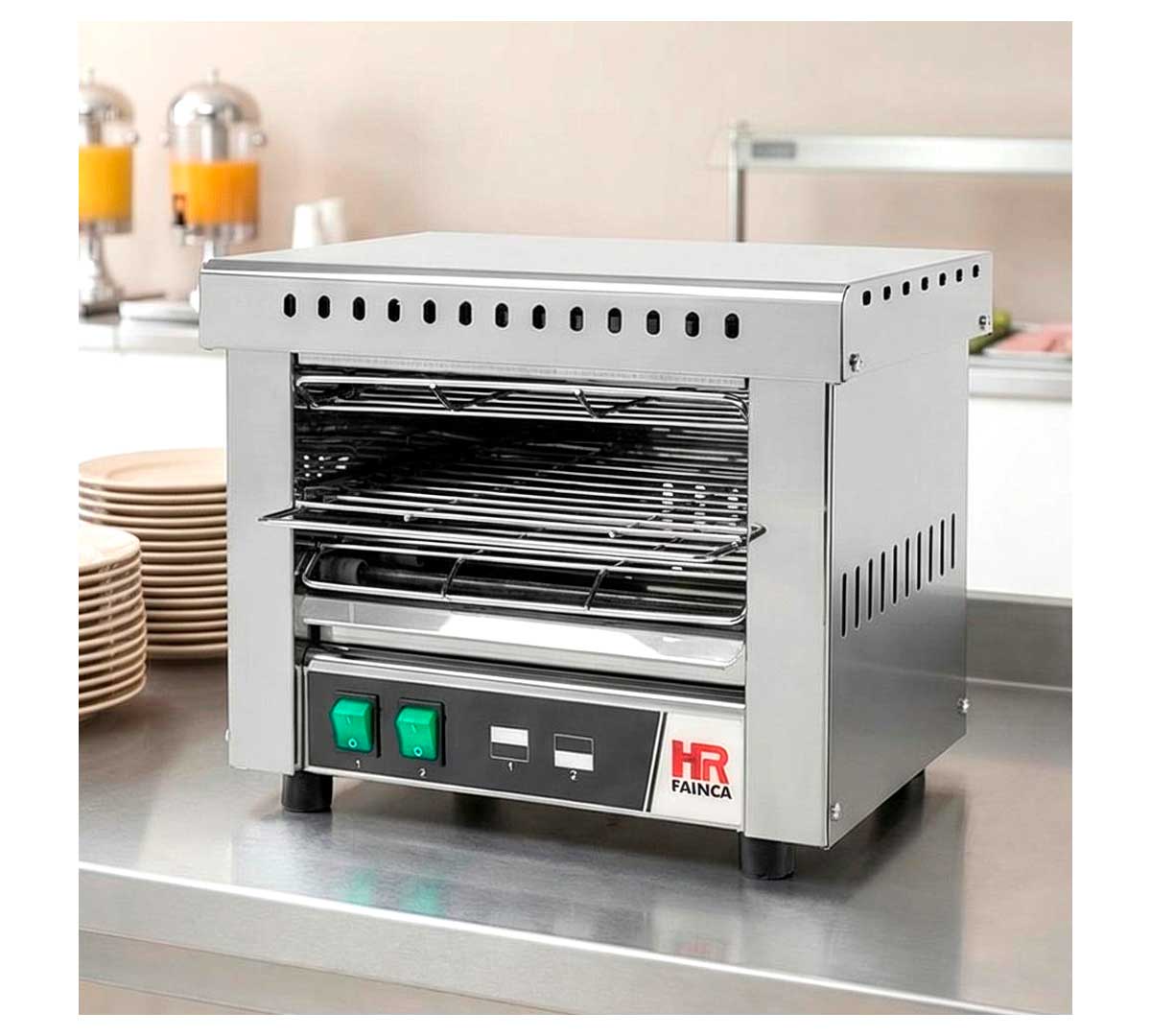 El Tostador sin Temporizador T02SINB de Fainca tiene un nivel y está fabricado en acero inoxidable.