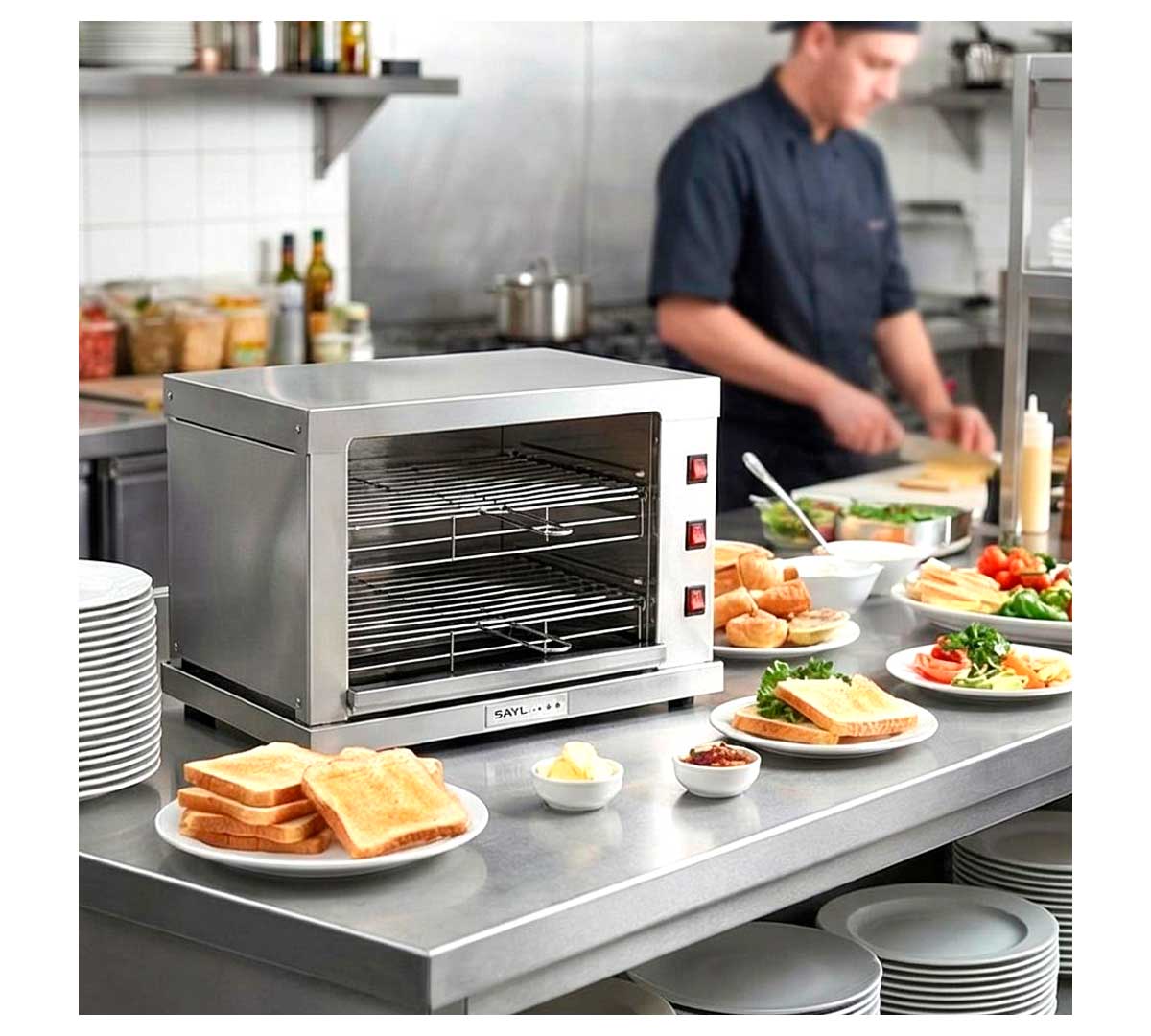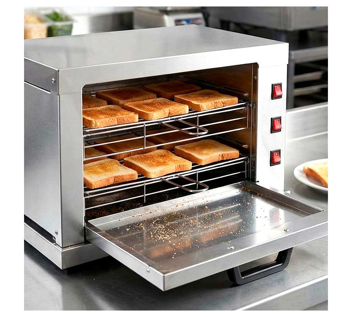 Ideal para el servicio continuado en cafeterías, buffets de desayuno, panaderías y cualquier establecimiento que requiera un equipo de tostado fiable y de alto rendimiento. Permite preparar tostadas, bocadillos calientes y otras elaboraciones de forma ágil y eficiente.