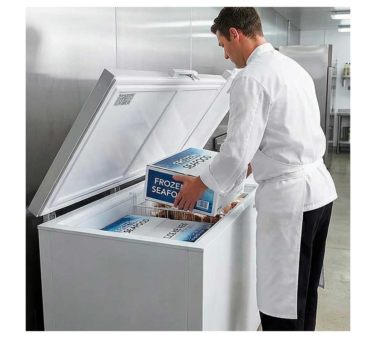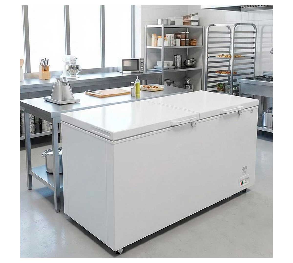 Congelador industrial de gran capacidad, permite congelar hasta 900 litros. Está fabricado con cuba interior en chapa plastificada blanca. Provisto de doble opaca abatible con cerradura. Tiene un rango de temperatura -18 a -22 ºC. Dispone de sistema de refrigeración estática.