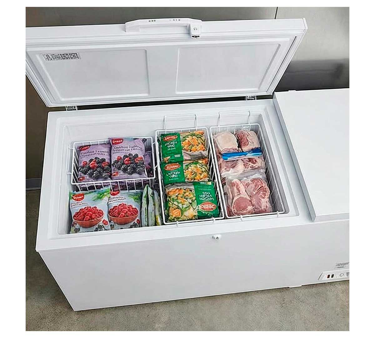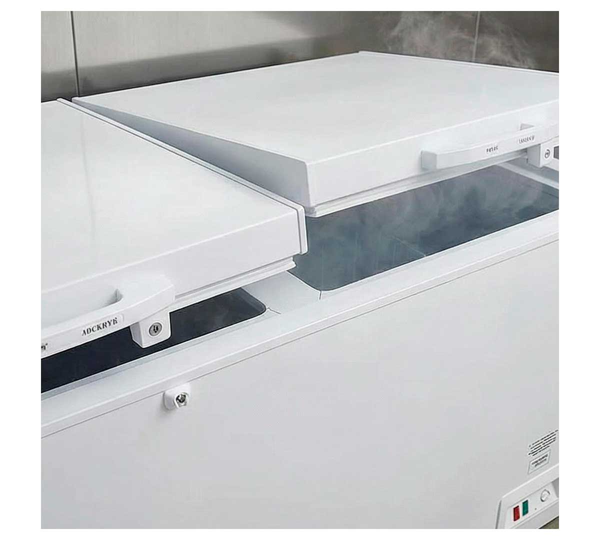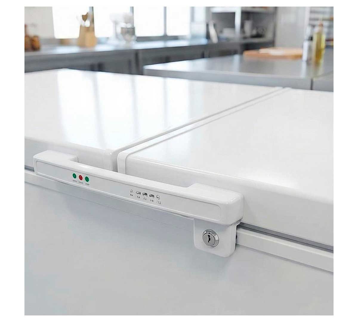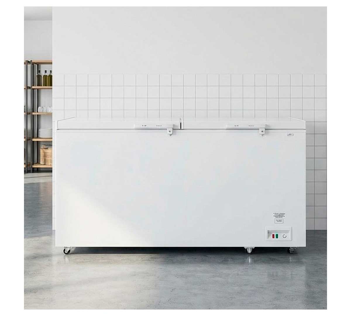 Este congelador horizontal tiene una capacidad de 800 litros repartidos en dos compartimentos individuales.