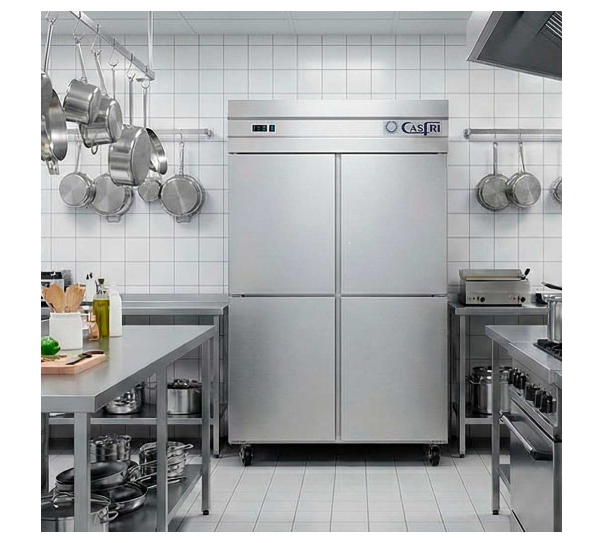 Armario frigorífico con 4 medias puertas opacas. Tiene control digital de temperatura, compresor hermético ventilado y aislamiento de poliuretano inyectado a alta presión.