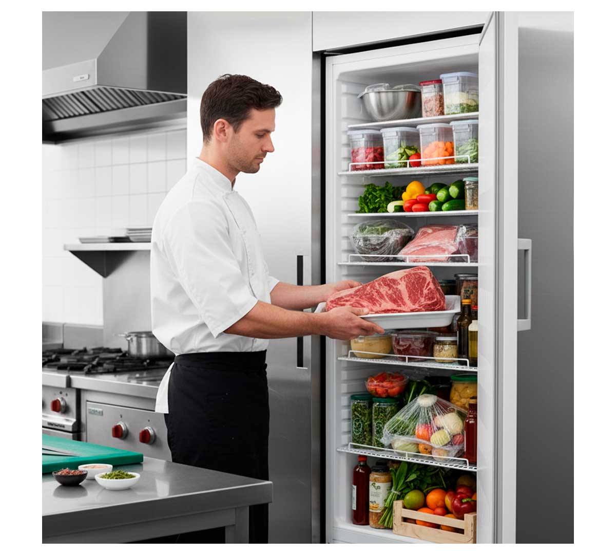 Armario frigorífico de puerta opaca especial gastronorm. Provisto de control digital de temperatura. Es apto para bandejas GN 2/1. Tiene una capacidad de 520 litros. Está disponible con acabado exterior en chapa plastificada skinplate o inox.