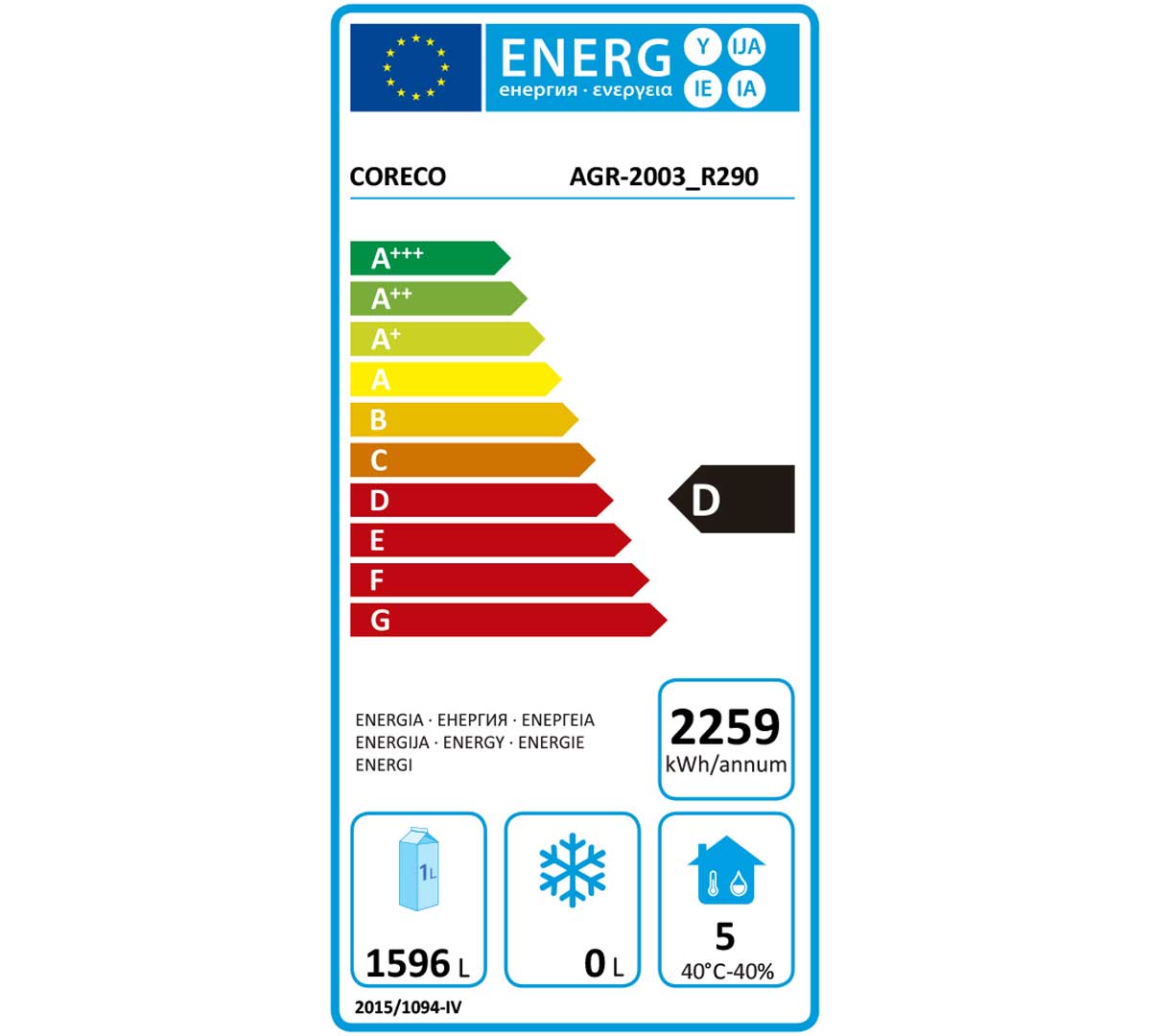 El armario frigorífico AGR-2003 tiene etiqueta de eficiencia energética clase D, según el reglamento 2015/1094.