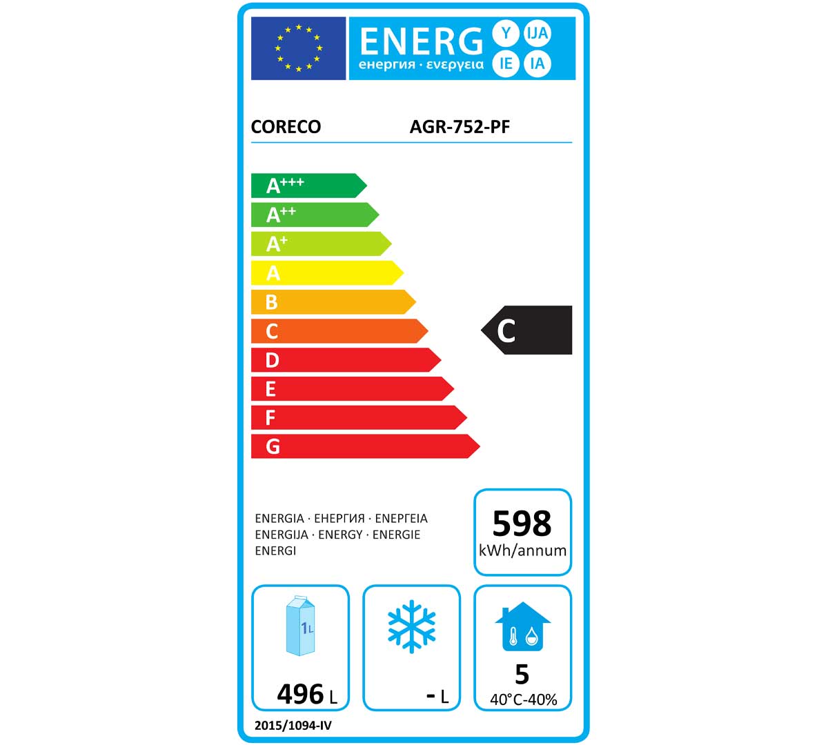 El armario frigorífico AGR-752 tiene etiqueta de eficiencia energética clase C, según el reglamento 2015/1094.