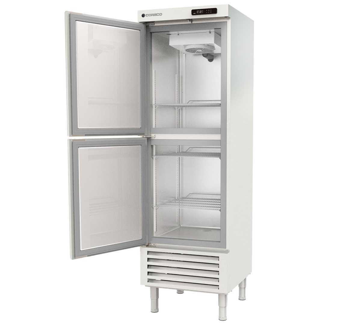 El Armario Refrigerado Snack ACR-752 de Coreco tiene control digital de temperatura, descarche optimizado, alarma por puerta abierta y alta temperatura de condensación. Incluye 3 parrillas de acero plastificado. Con 2 medias puertas opacas.