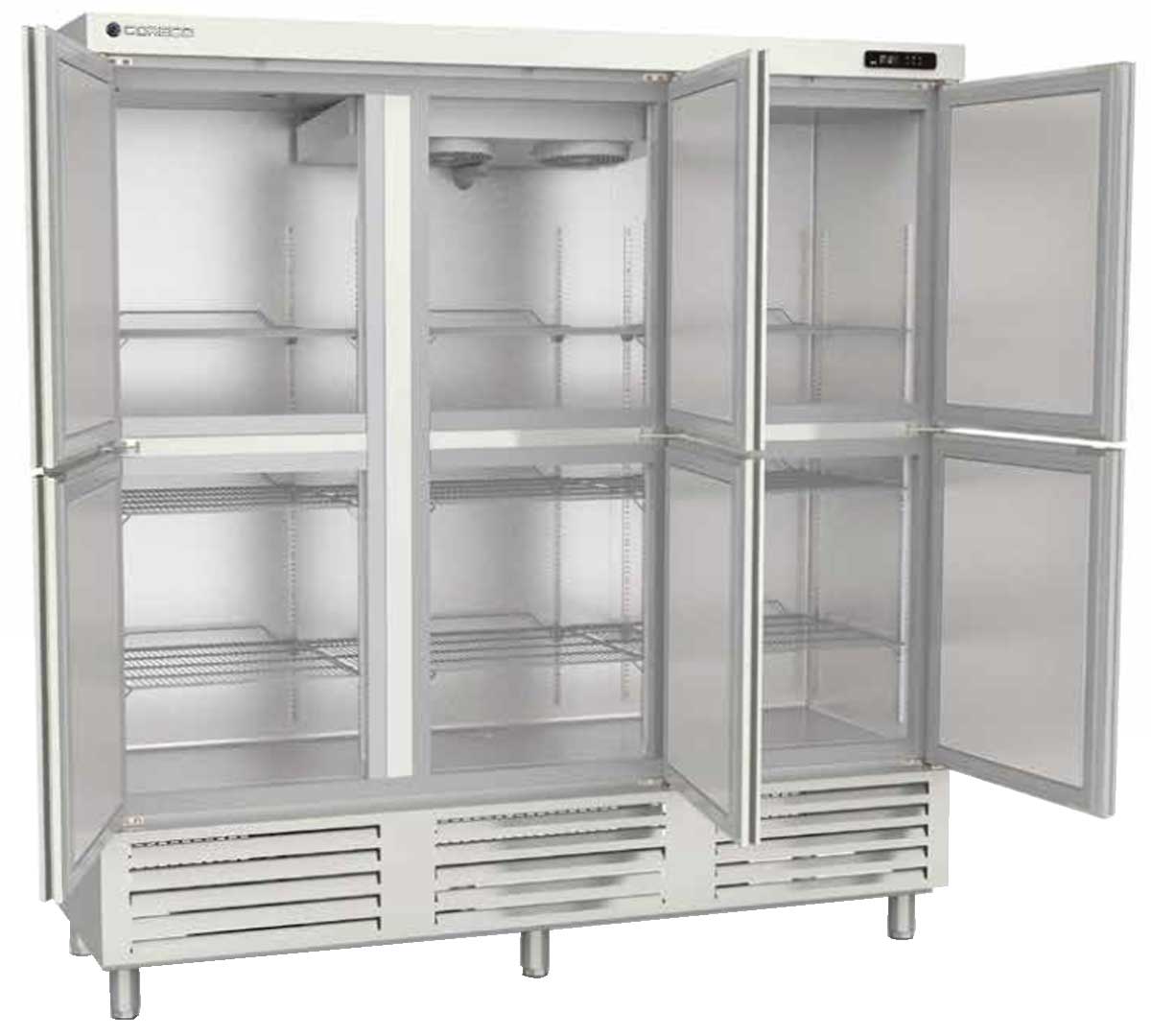 El Armario Refrigerado Snack ACR-2006 de Coreco tiene control digital de temperatura, descarche optimizado, alarma por puerta abierta y alta temperatura de condensación. Incluye 9 + 6 parrillas de acero plastificado. Tiene 6 medias puertas.