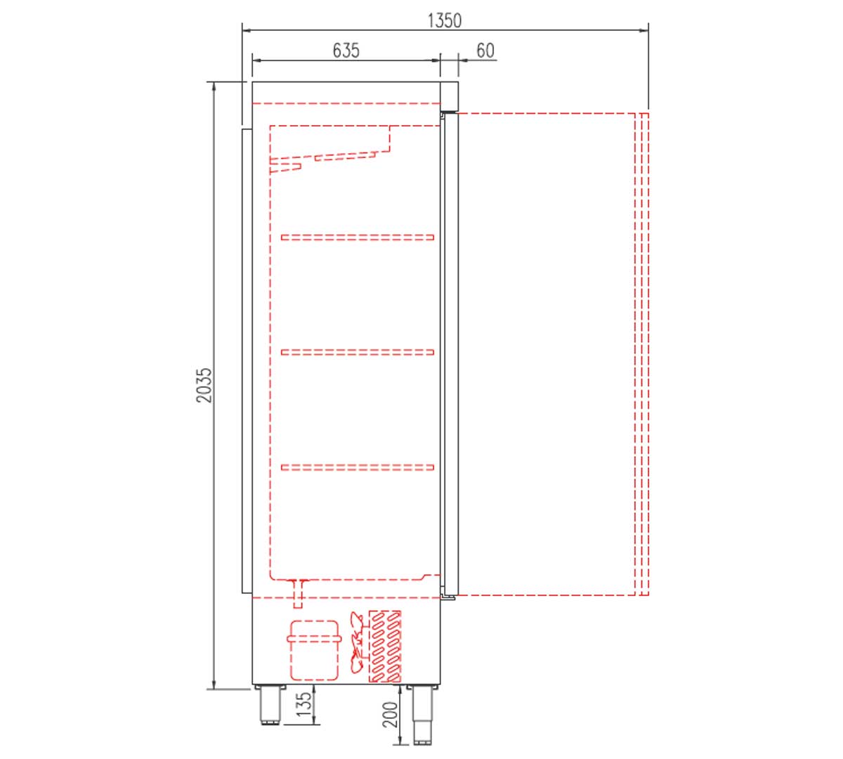 Este armario refrigerador es ideal para la conservación de productos frescos, alimentos precocinados y bebidas, manteniendo su calidad y seguridad alimentaria. Es especialmente adecuado para cocinas industriales, restaurantes, bares, hoteles y panaderías que requieren un equipo de refrigeración vertical robusto y fiable para el almacenamiento diario de productos perecederos.