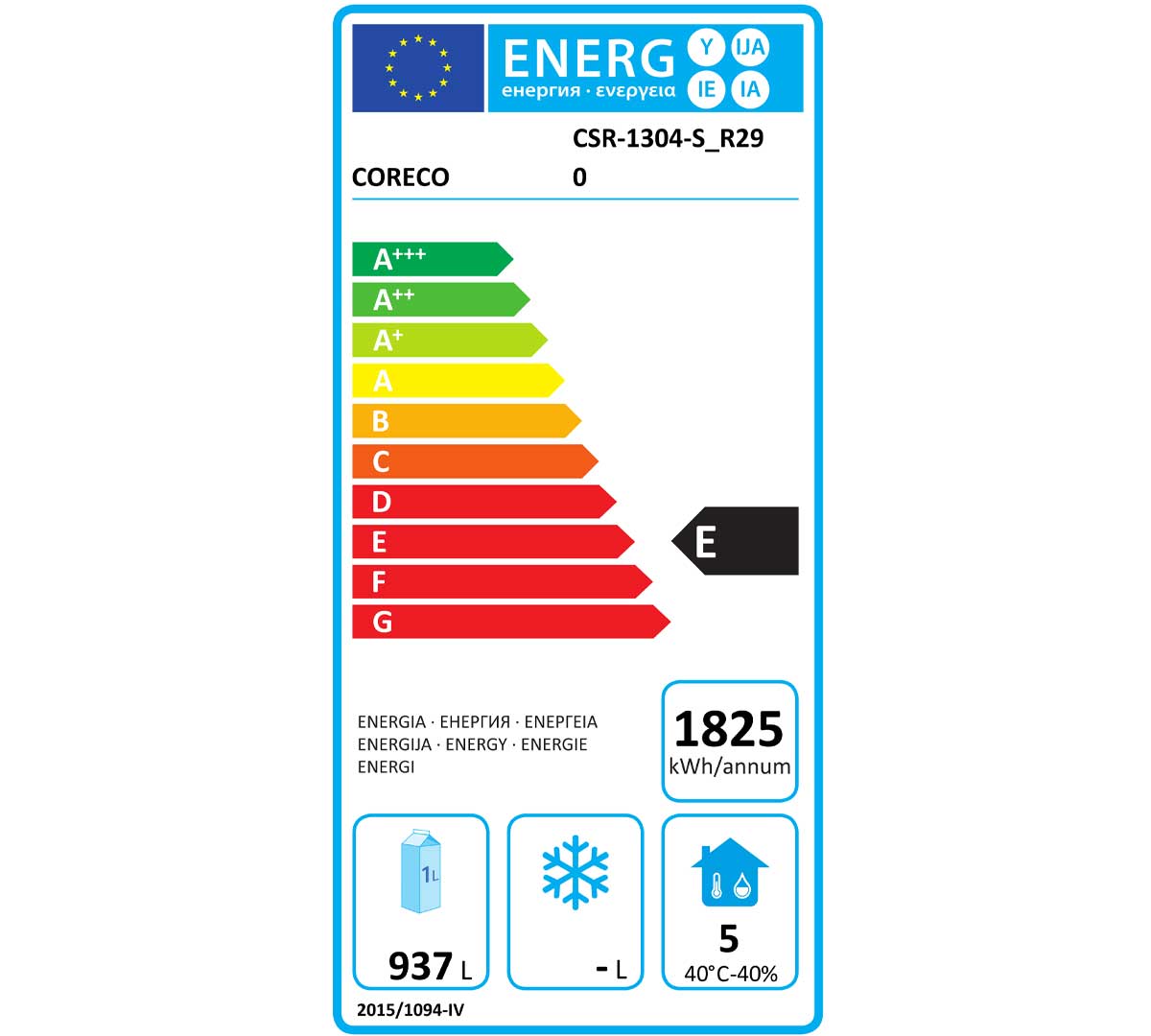 El armario frigorífico Snack 1304 S-Line tiene etiqueta de eficiencia energética clase E, según el reglamento 2015/1094.