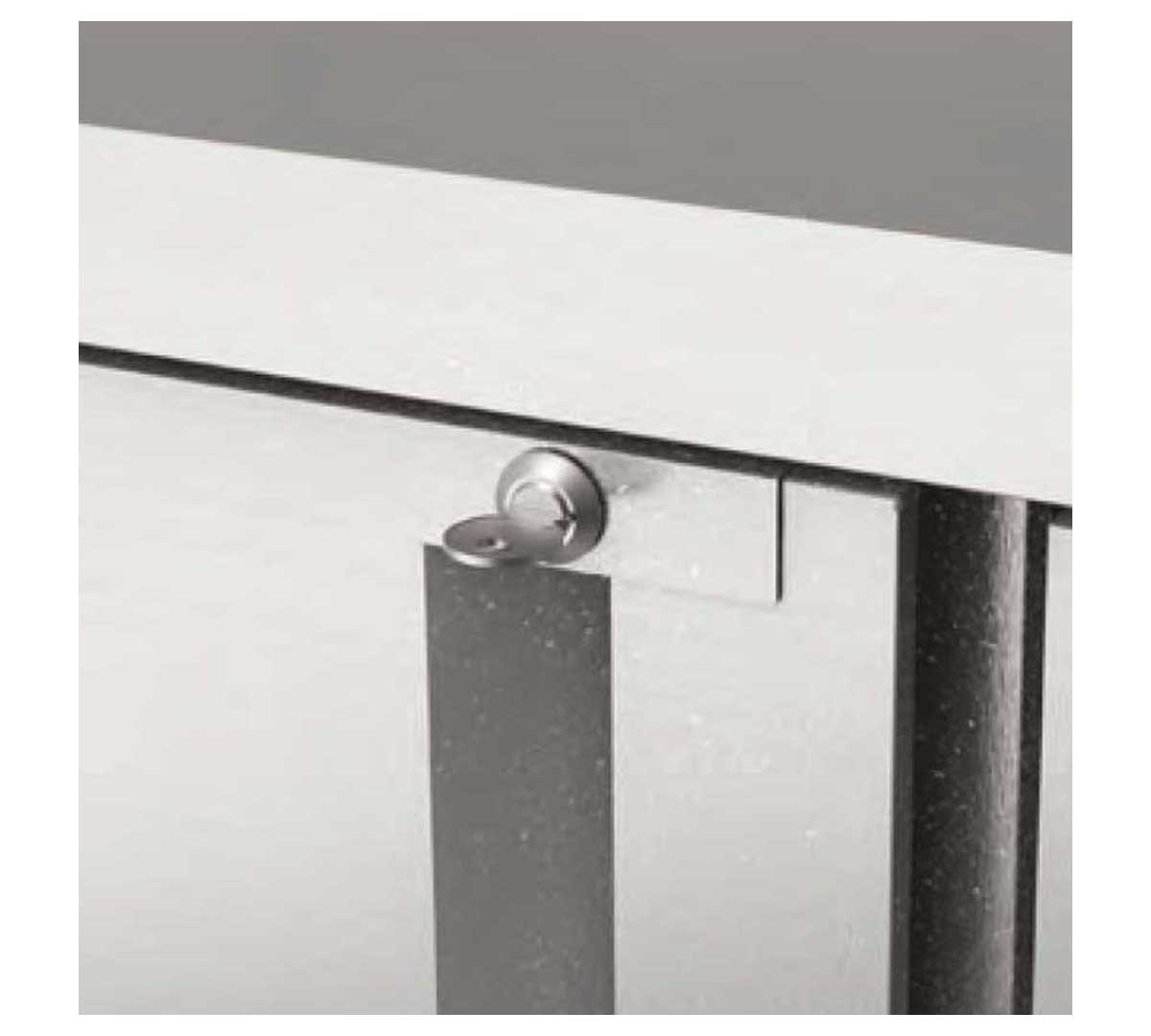 La Cerradura de Coreco es compatible con la gama de armarios expositores refrigerados, congeladores verticales, mesas refrigeradas, armarios frigoríficos, mesas de congelación y mesas frías para ingredientes de Coreco.