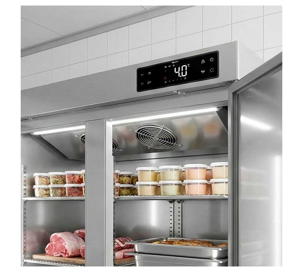 El Armario de Refrigeración Euronorm 600x400 Serie Nacional AN 902 T/F de Infrico tiene un controlador digital e intuitivo IP 65 que permite una mayor precisión en el control de la temperatura y un mayor ajuste del intervalo de temperatura.