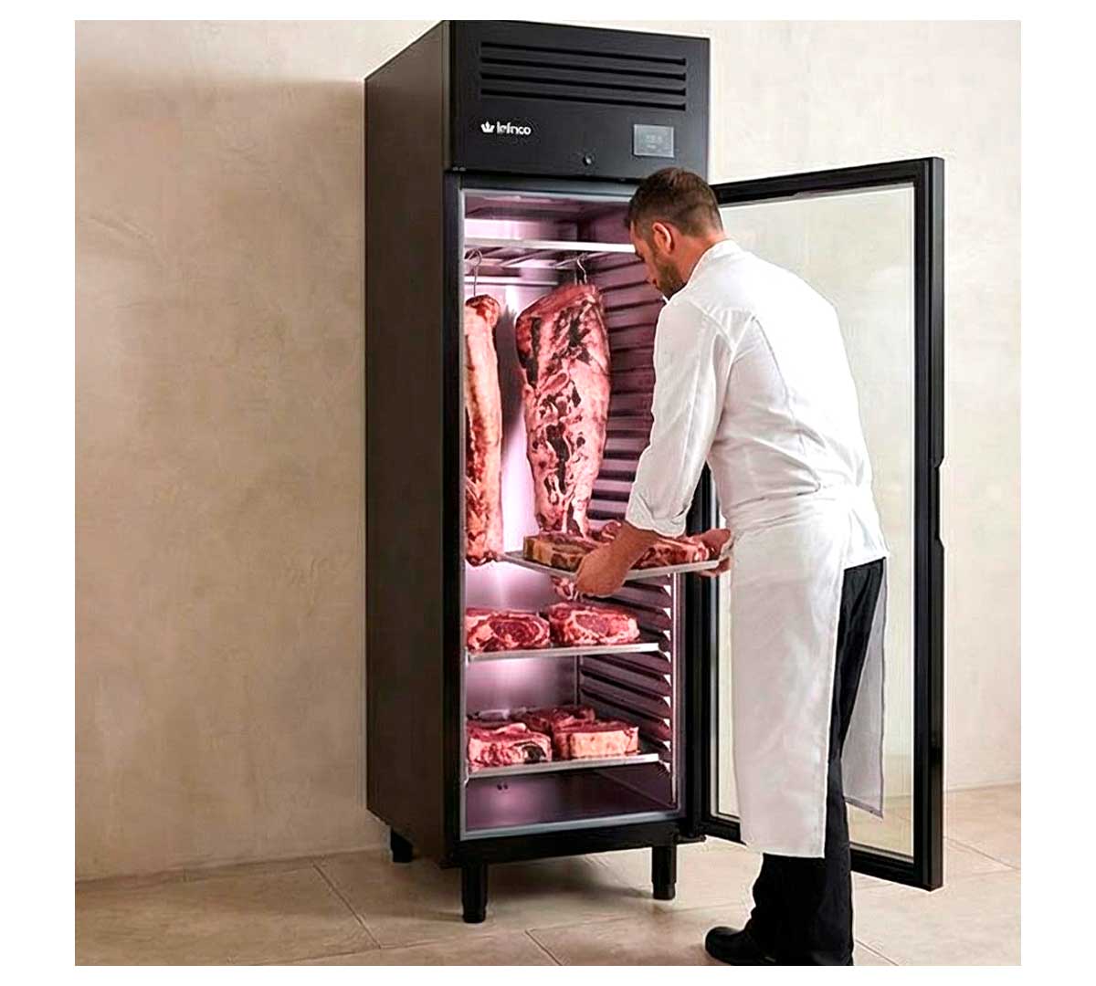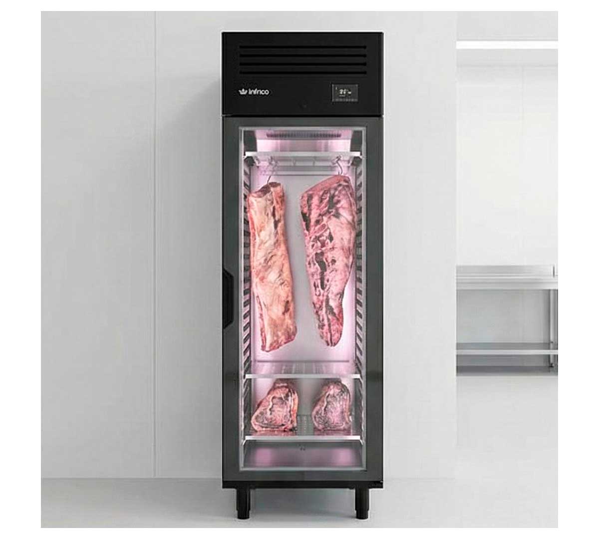 El Armario Madurador de Carne Dry Aging AGB 701 MDAB Inox de Infrico está diseñado para llevar a cabo el proceso conocido como dry aging de forma fácil segura y controlada. Permite obtener los mejor resultados en cuanto a sabor, textura y aromas.